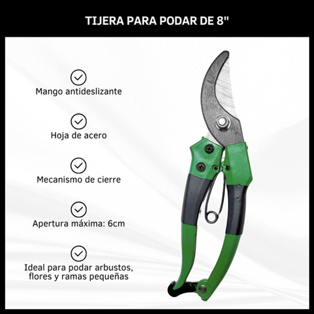 Ideal para podar arbustos, flores y ramas pequeñas
