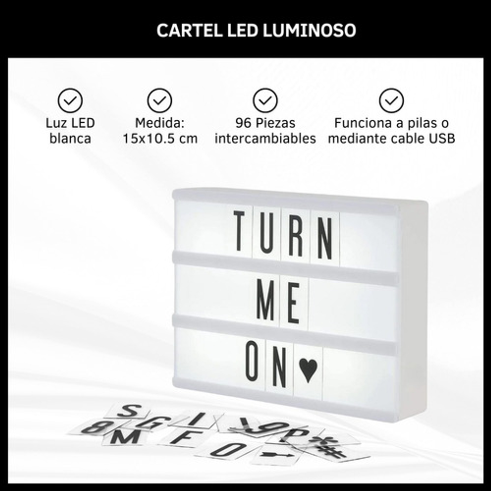 96 Piezas intercambiables entre letras, números y símbolos, ideal para personalizar el mensaje cartel según tus necesidades.
