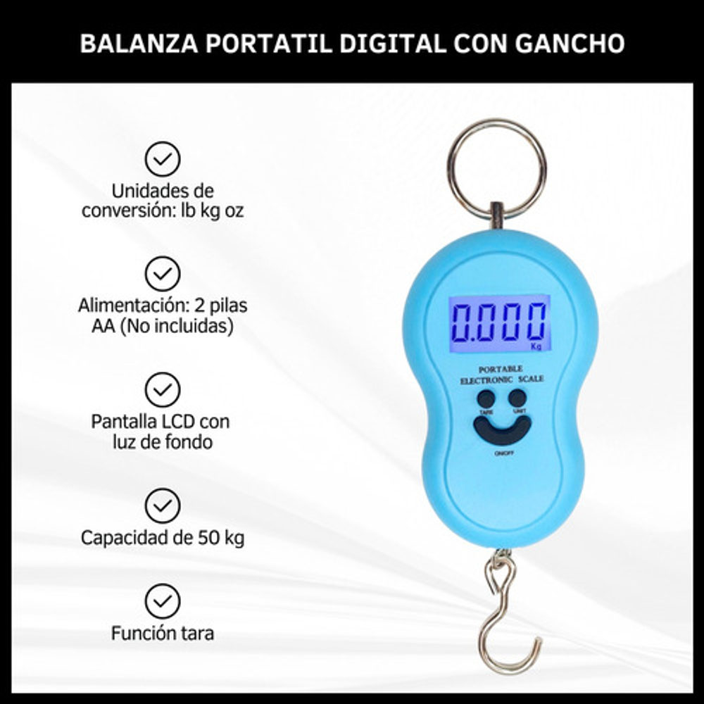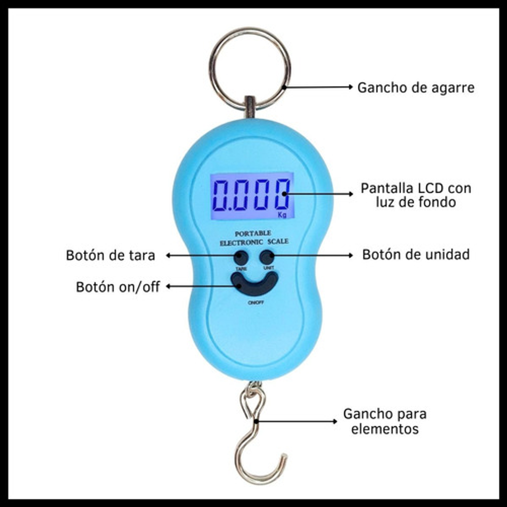 BALANZA DIGITAL PORTATIL DE MANO PARA VALIJA O PESCA.