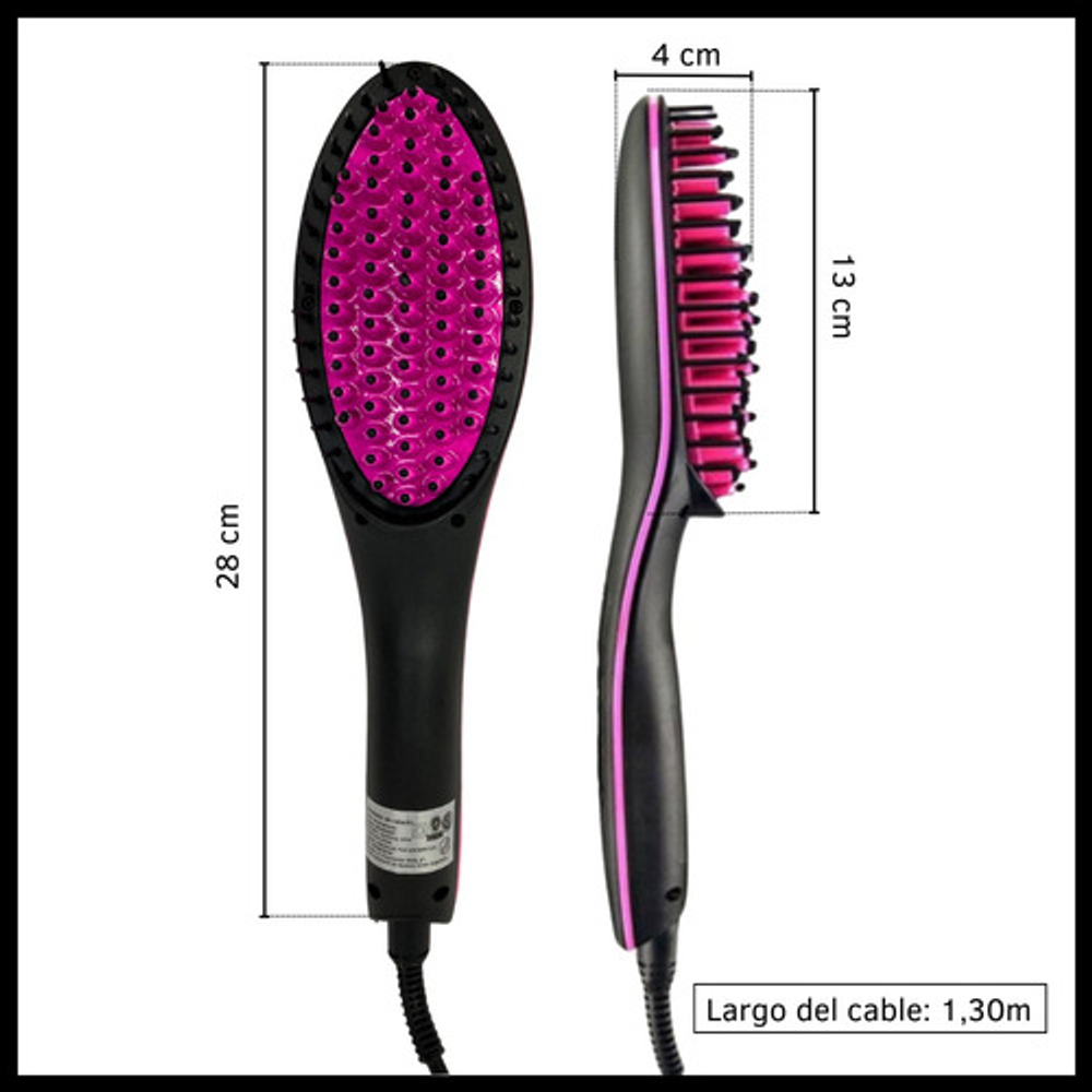 Características del cepillo alisador: • Botón de encendido y apagado. • Pantalla digital LCD. • 29 rangos de temperatura (80 a 230ºC/160-450ºF). • Temperatura en ºC o ºF. • Apagado automático luego de 60 minutos. • Calentamiento rápido. • Ideal para todo tipo de cabello.