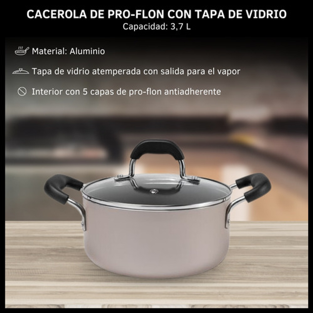 OLLA CACEROLA DE PRO-FLON ANTIADHERENTE CON TAPA DE VIDRIO