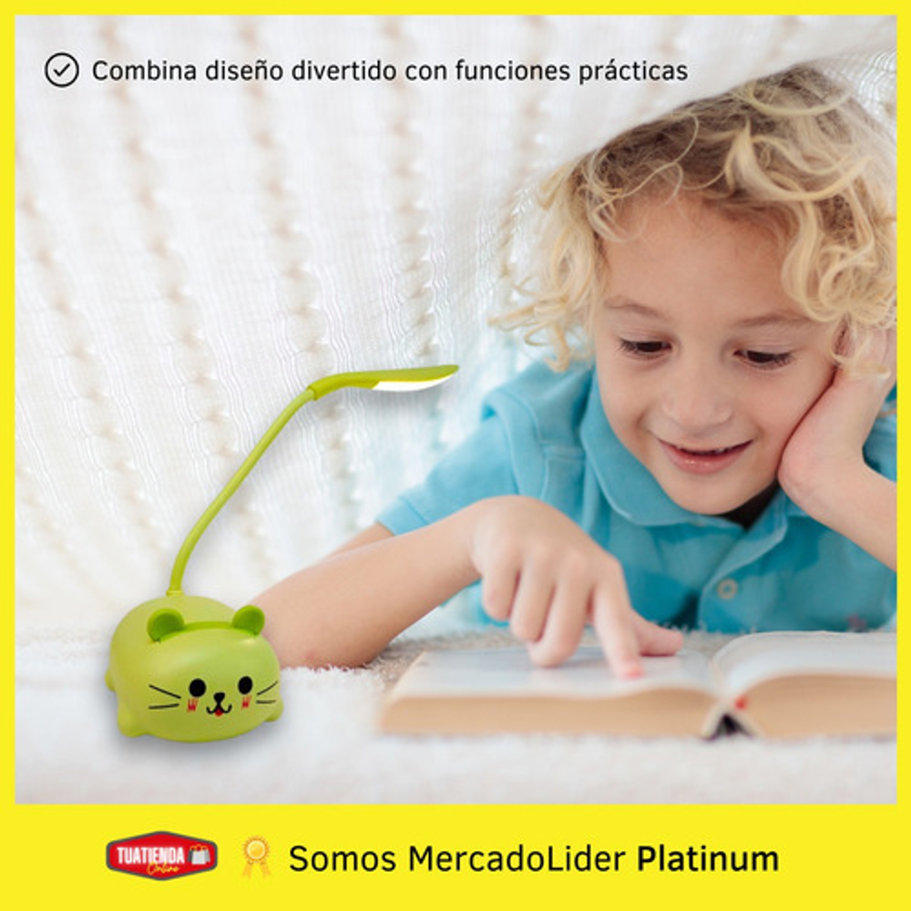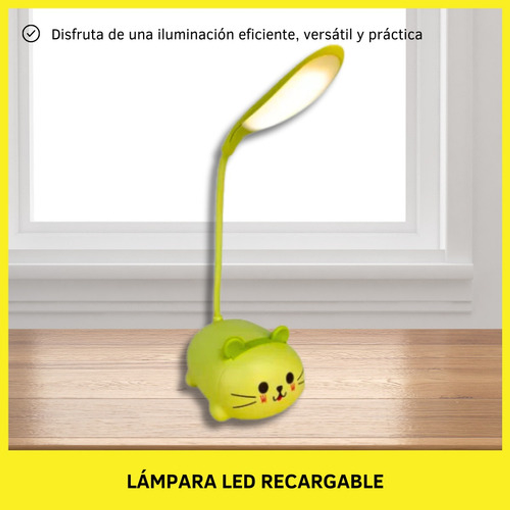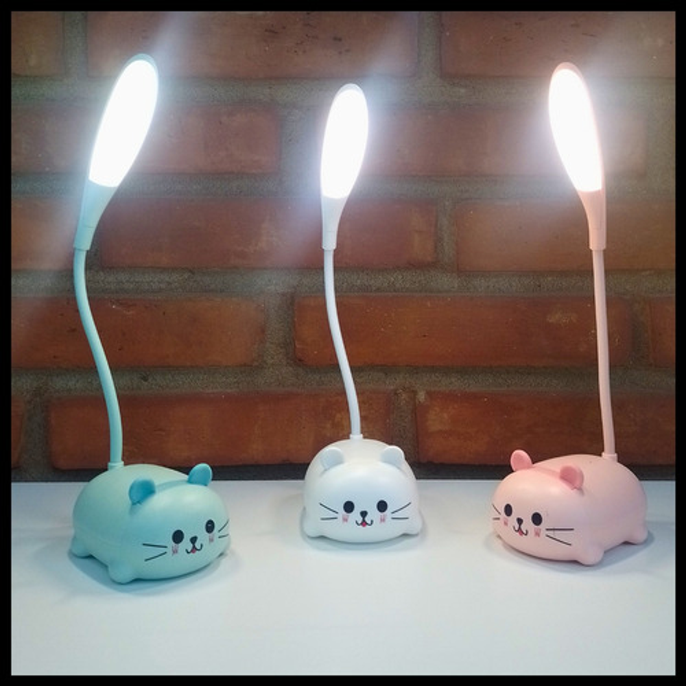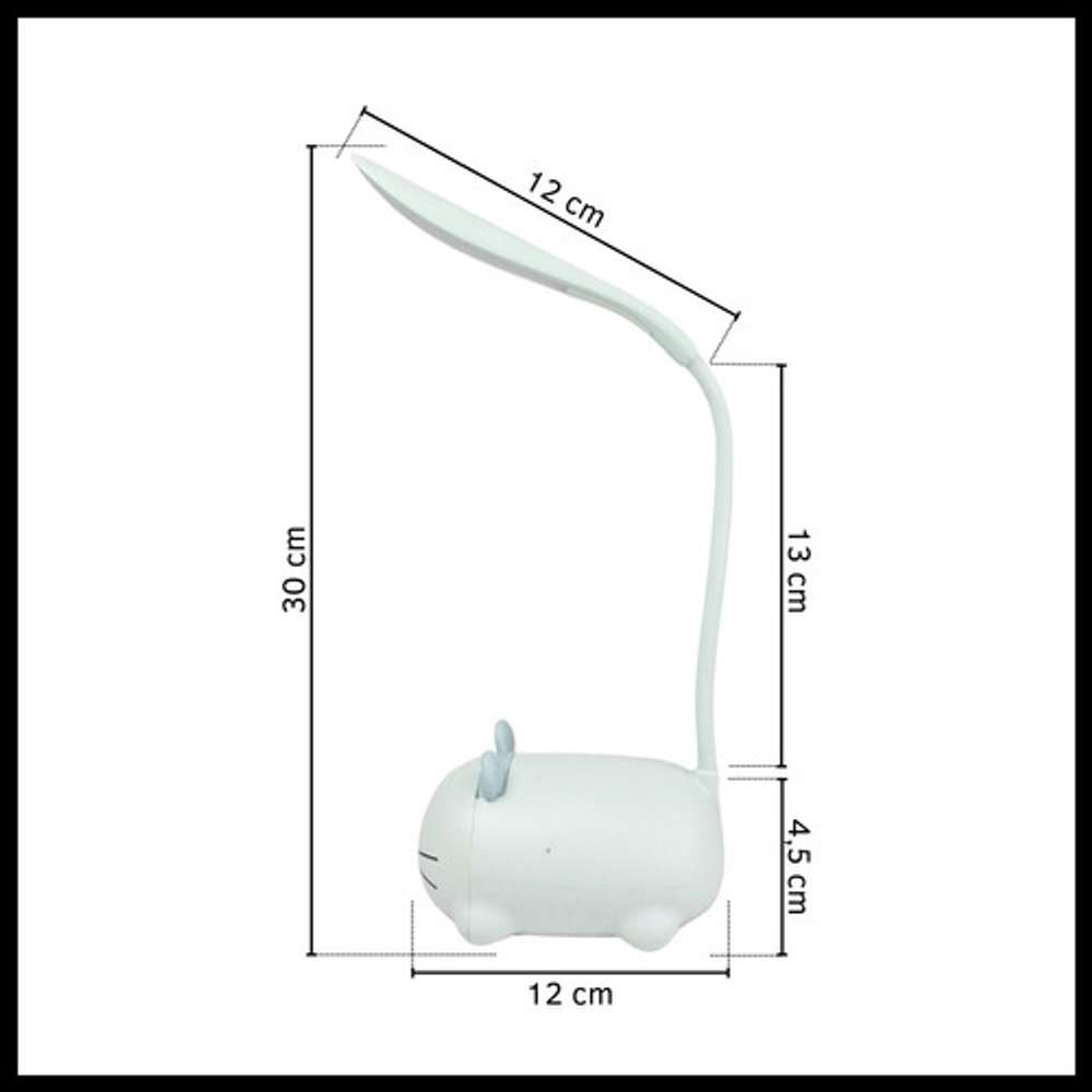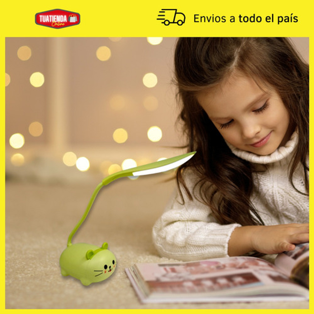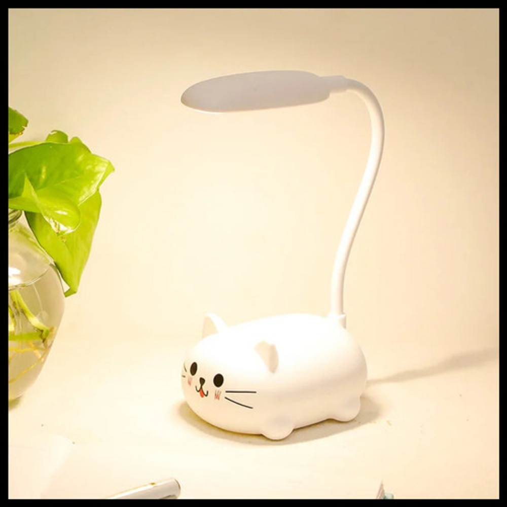 Características: • Material: plástico. • Diseño de gatito. • Luz de noche. • Carga USB. • Brazo 360º.