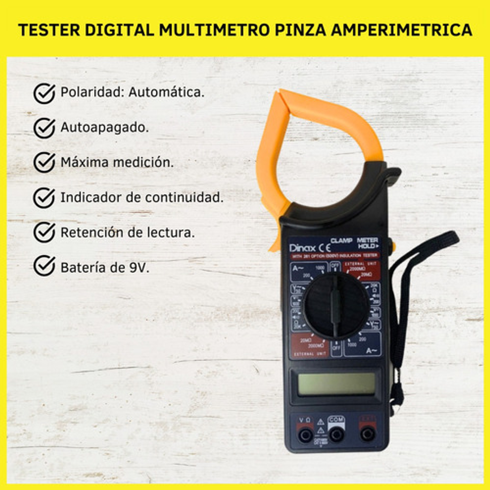 PINZA AMPERIMETRICA DINAX TESTER MULTIMETRO DIGITAL