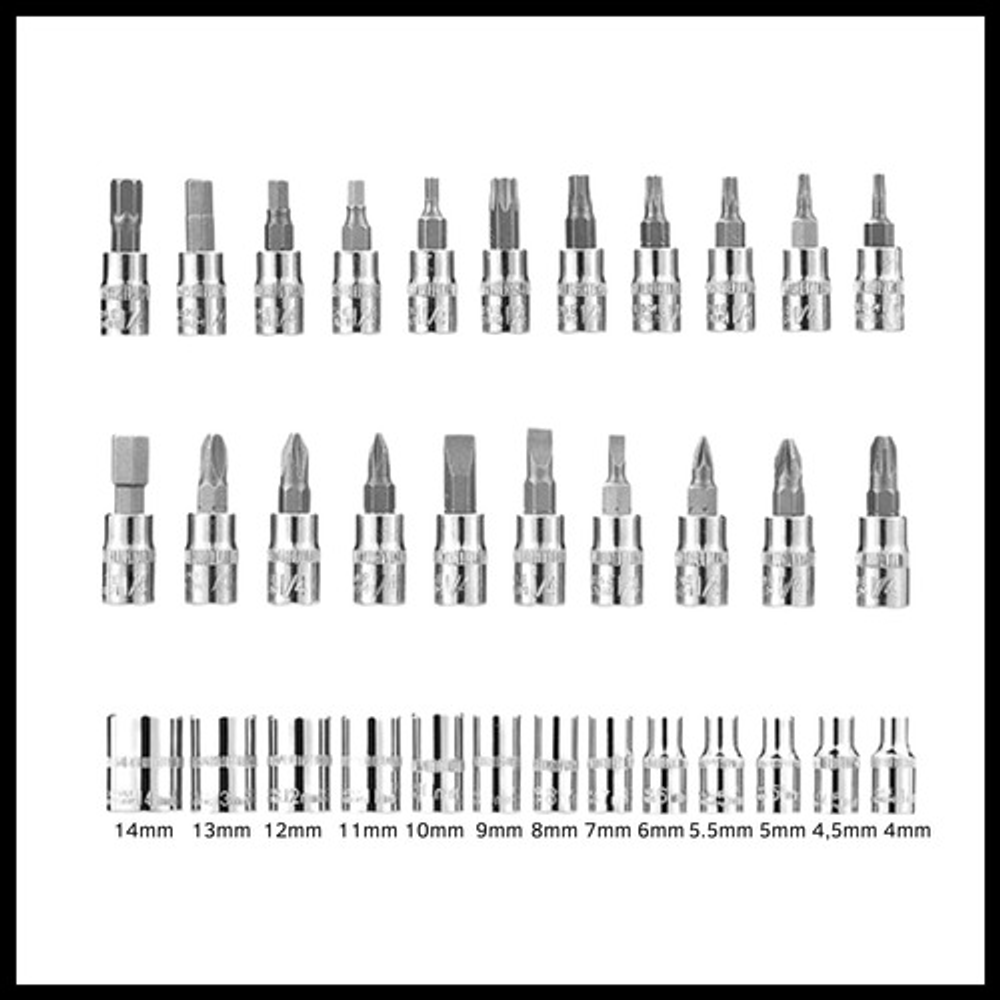 13 Dados DR 1/4: 4, 4.5, 5, 5.5, 6, 7, 8, 9, 10, 11, 12, 13, 14mm.