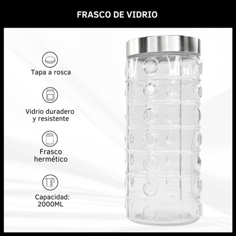FRASCO DE VIDRIO CAPACIDAD DE 2000ML TAPA DE ALUMINIO CIERRE HERMÉTICO
