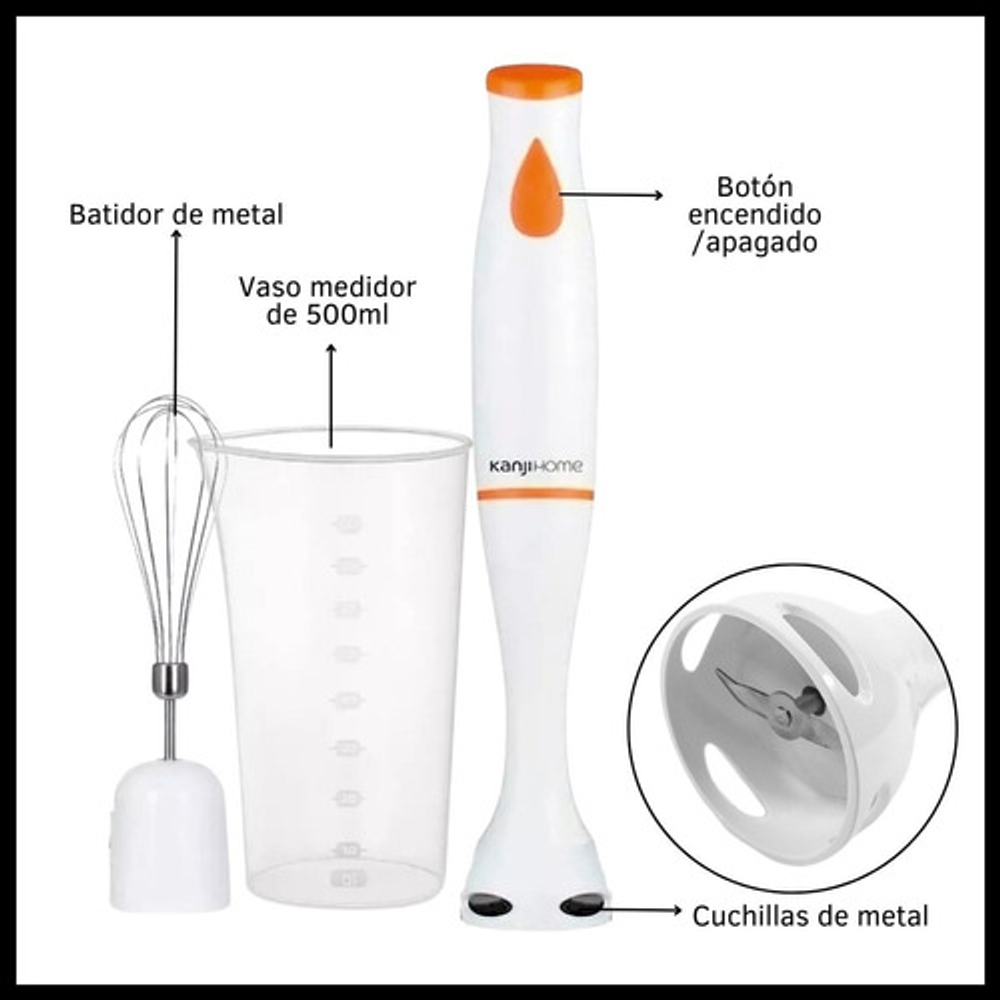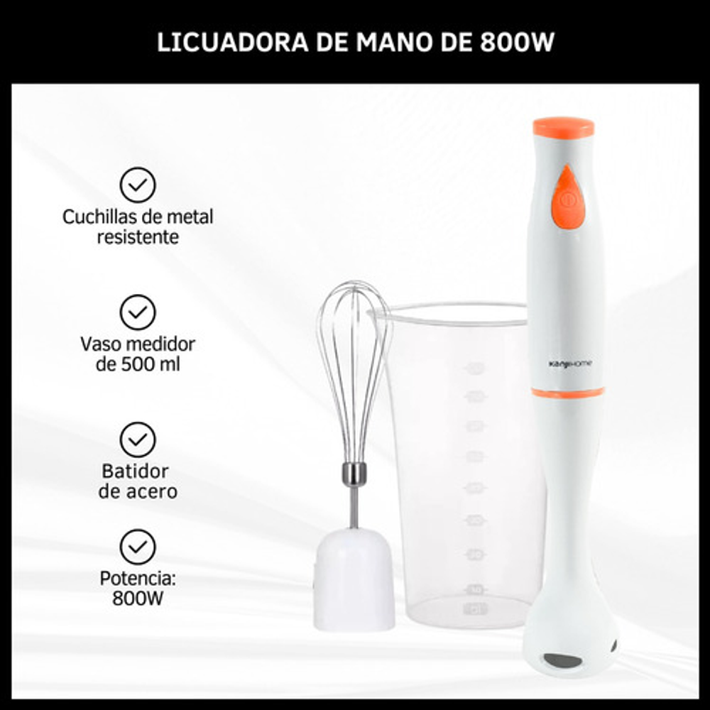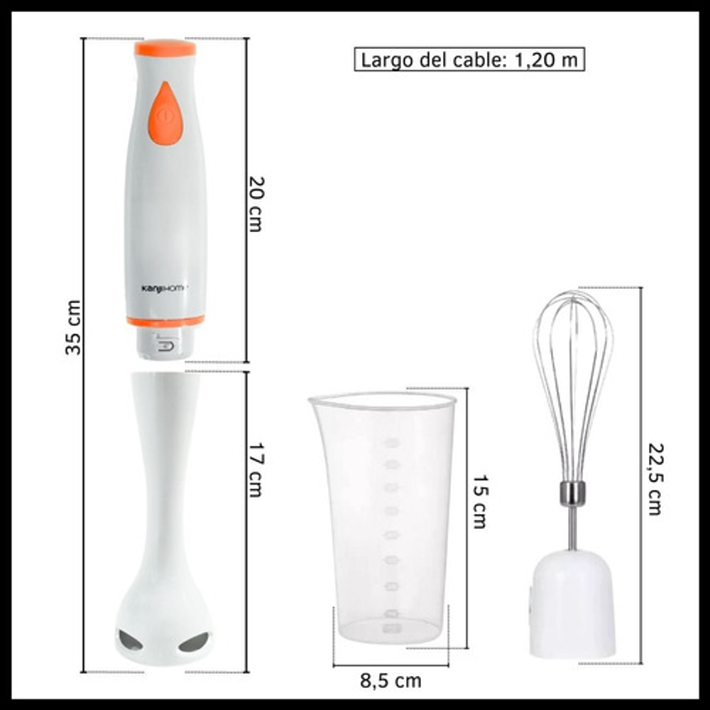 Características: • Fácil de limpiar y lavar gracias a sus partes desmontables. • Potencia de 800W que garantiza un rendimiento excepcional en cada uso. • Al ser 2 en 1, no necesitas múltiples aparatos para diferentes tareas de cocina. • Cuchillas de acero inoxidable, perfectas para tritutar y picar cualquier tipo de alimentos. • Vaso medidor de 500ml, ideal para medir y preparar porciones exactas de tus recetas favoritas. • Batidor de acero, ideal para batir huevos, cremas y mezclas ligeras con la máxima eficiencia.