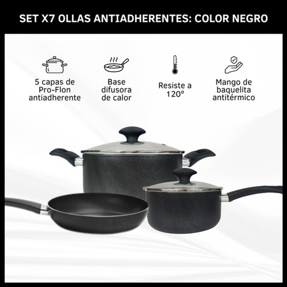 SET DE COCINA: 7 PIEZAS DE PRO-FLON ANTIADHERENTE