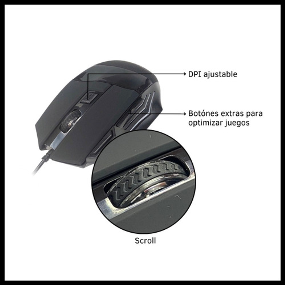 4 niveles de ajuste de DPI: 800-1600-2400-3600. Esto te permite elegir la sensibilidad.