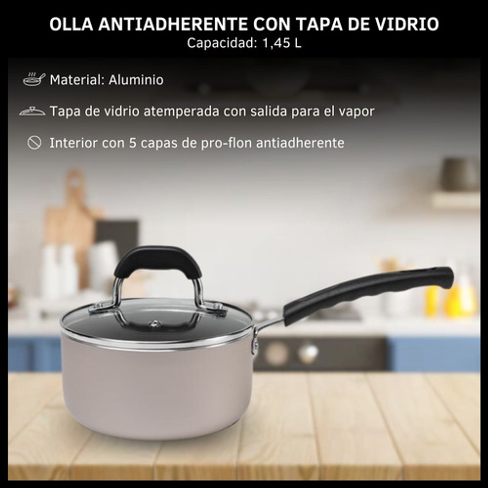 OLLA CACEROLA DE PRO-FLON CON TAPA DE VIDRIO