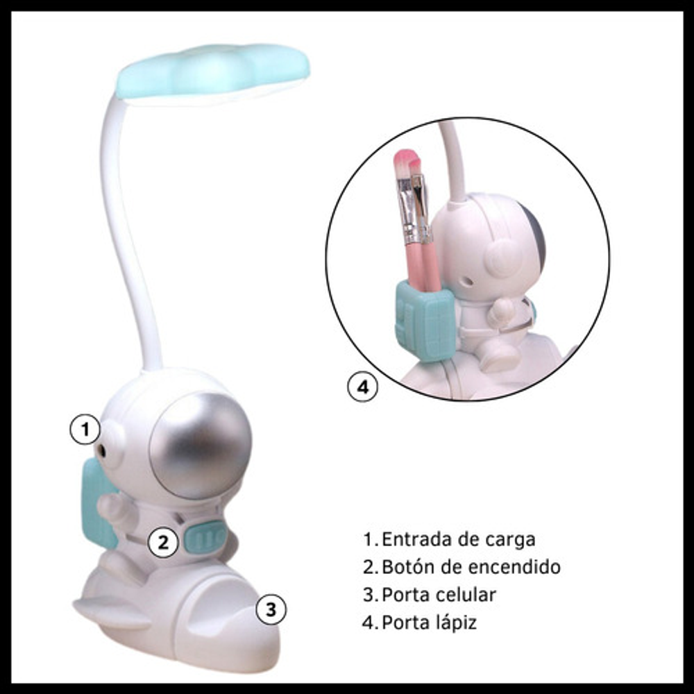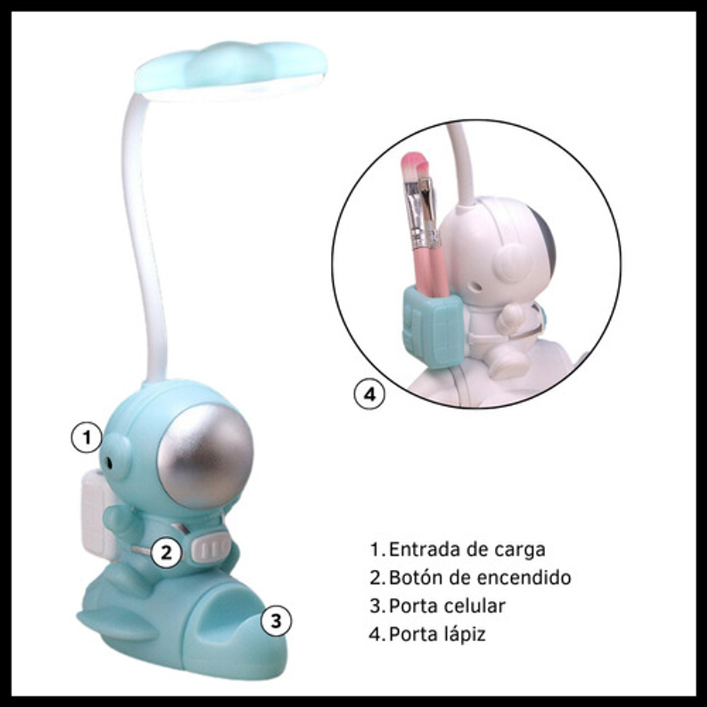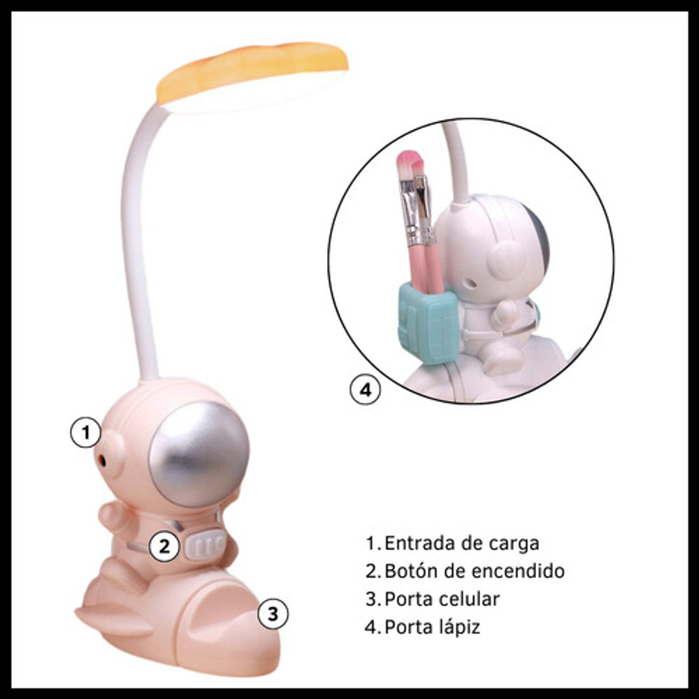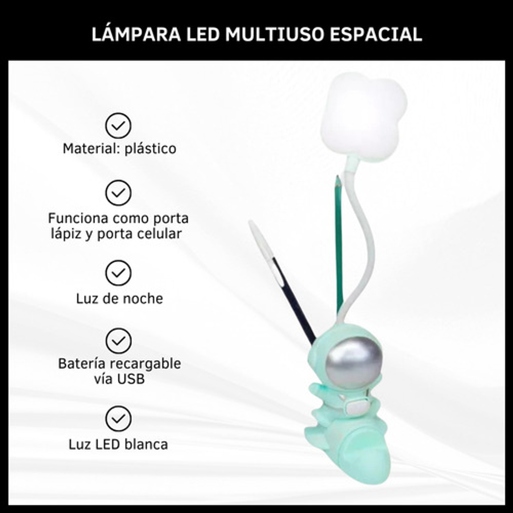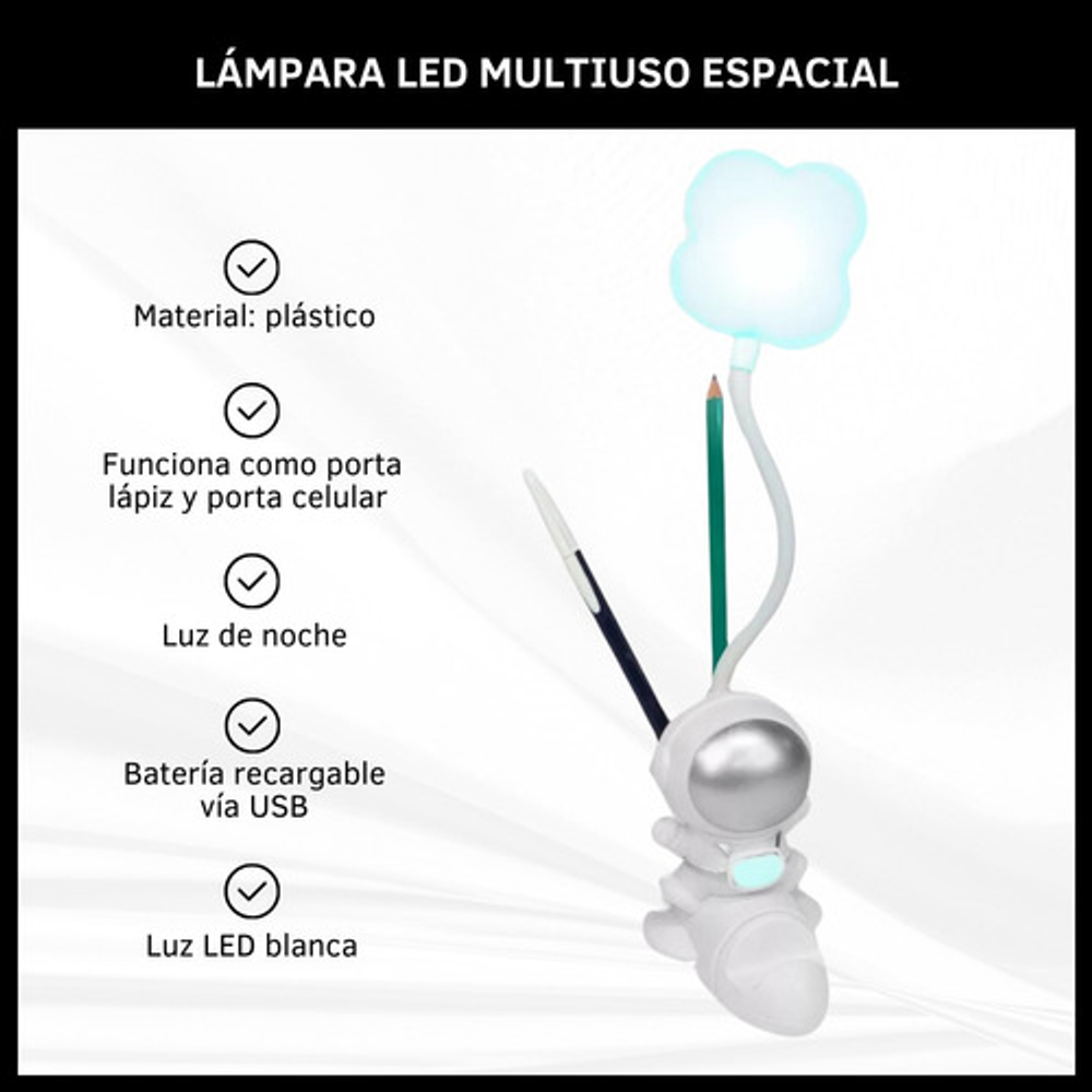 LÁMPARA LED MULTIUSO MODELO ESPACIAL CON PORTA LÁPIZ Y CELULAR