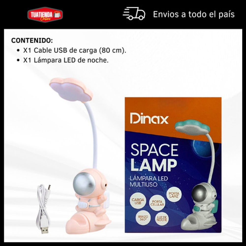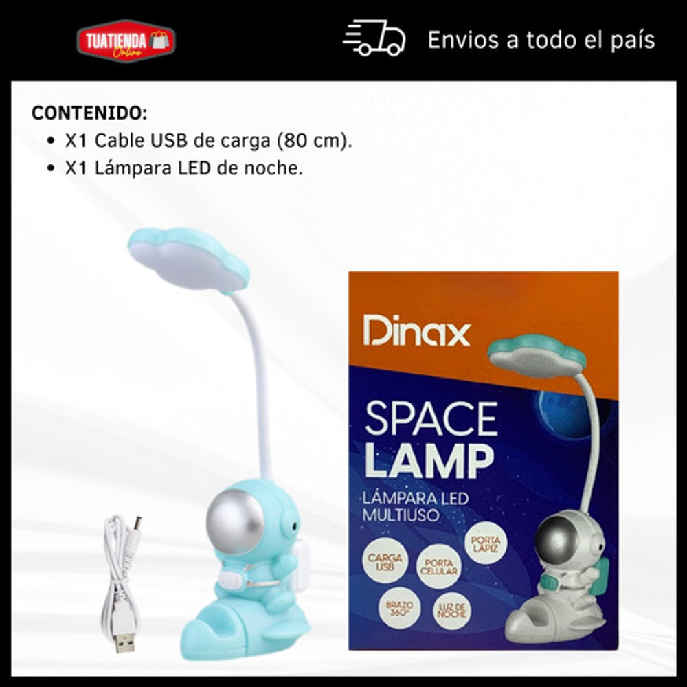 LAMPARA LED ASTRONAUTA: https://articulo.mercadolibre.com.ar/MLA-1370832685-lampara-noche-astrolamp-rgb-portalapiz-sacapuntas-usb-dinax-_JM