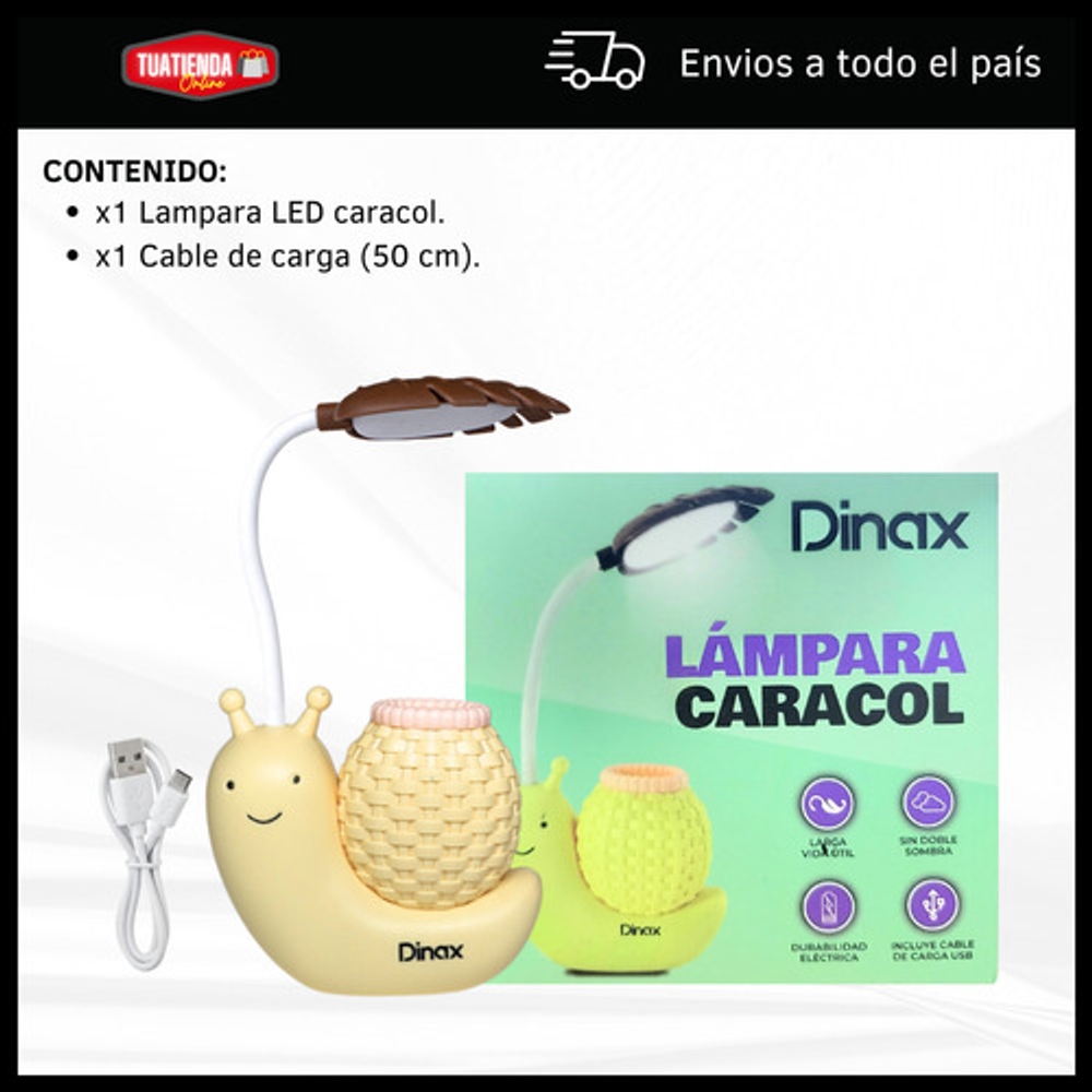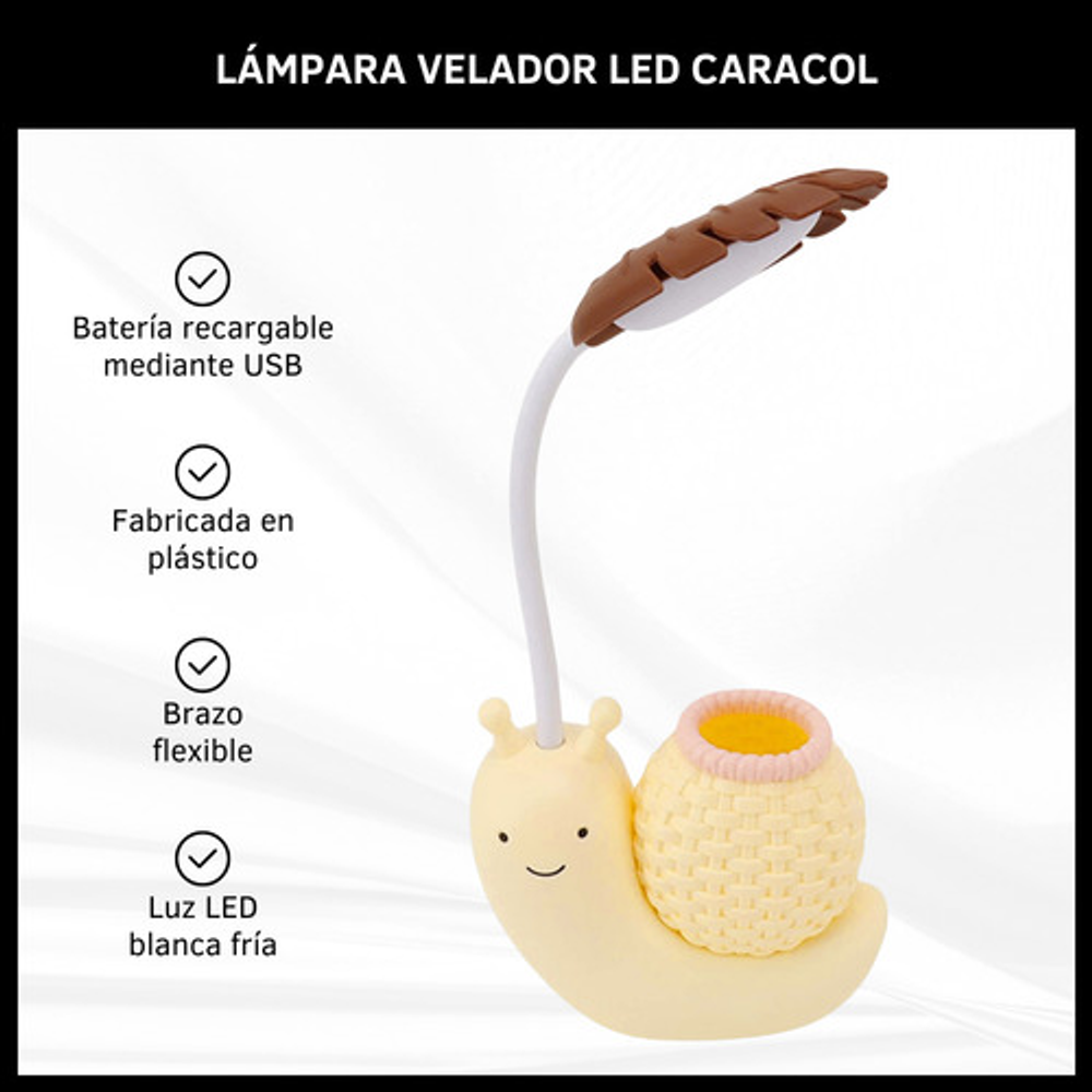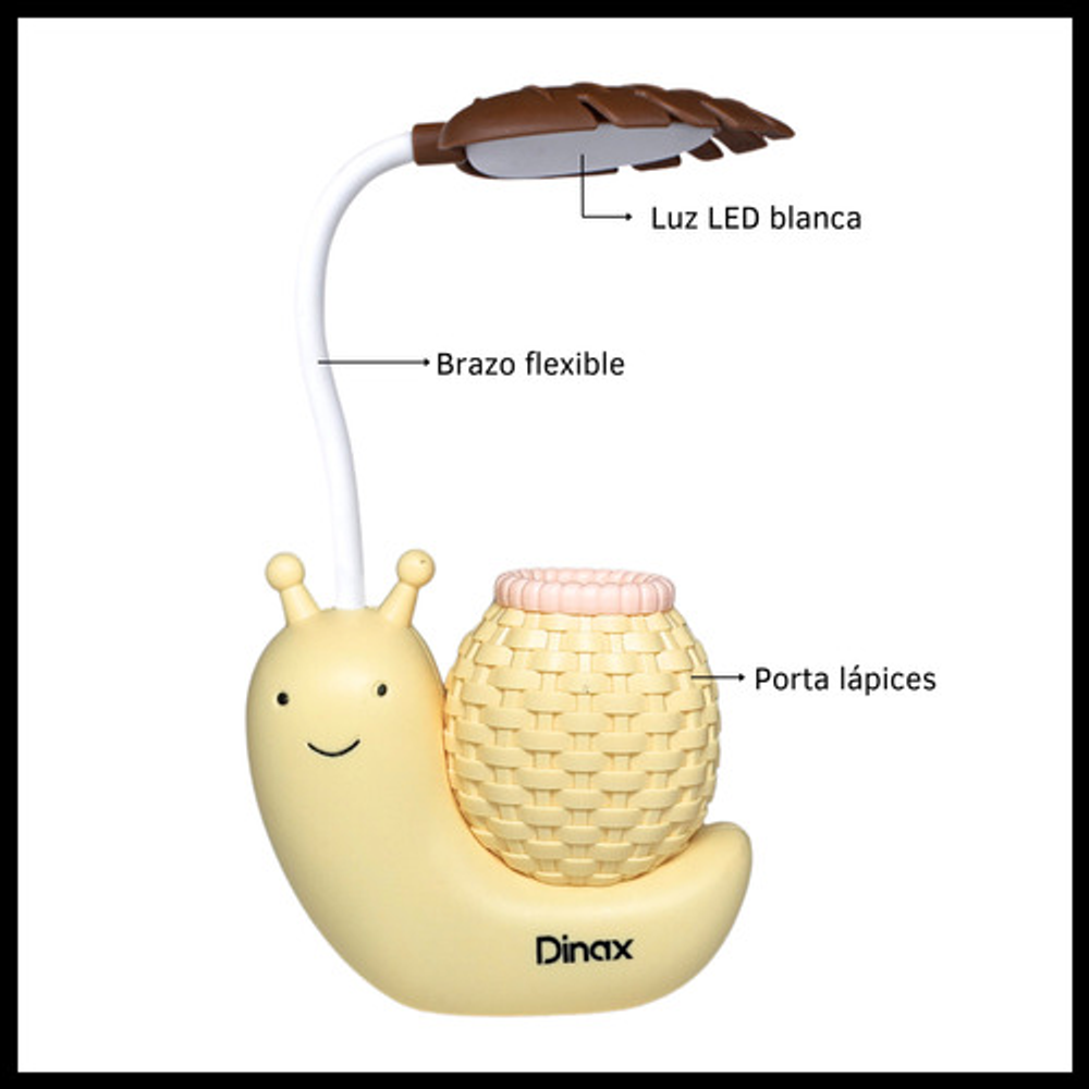 Características: • Su brazo flexible te permite ajustar el ángulo de la luz. • Ideal para decorar las habitaciones de los niños. • Luz LED blanca fría. Solo tiene 1 modo de luz. • Perfecta para escritorios o mesas de noche. • Batería recargable vía USB (Cable incluido) • Funciona como porta lápices u objetos. • Fabricado en plástico resistente.