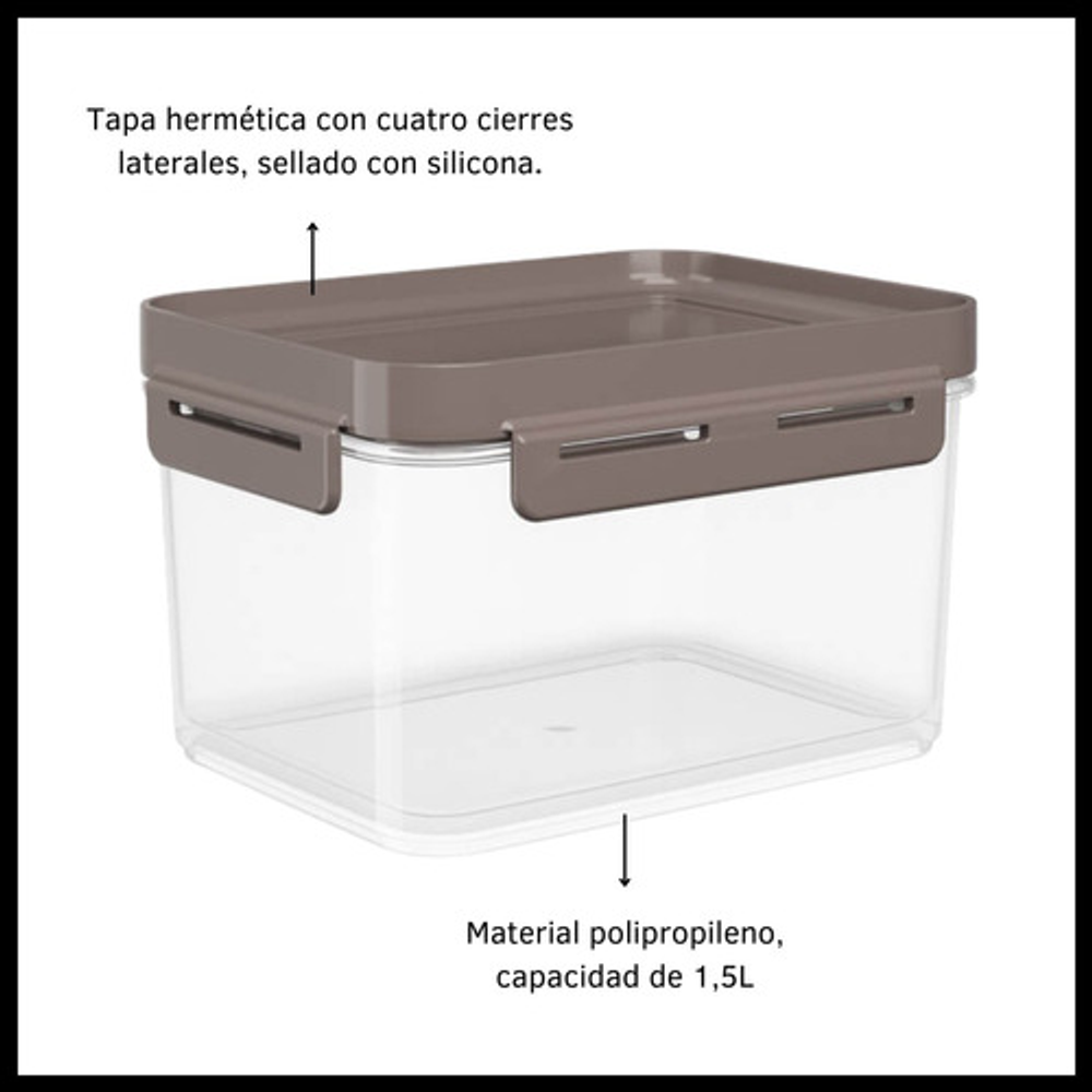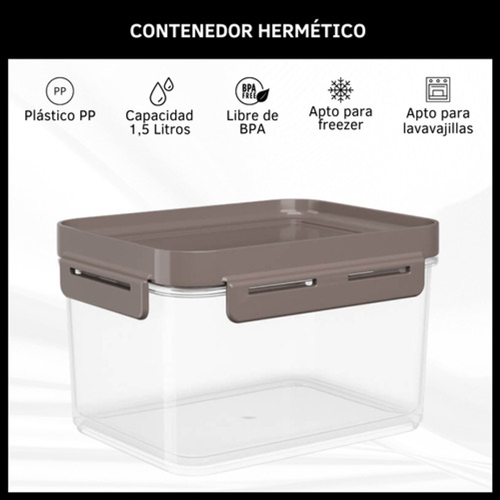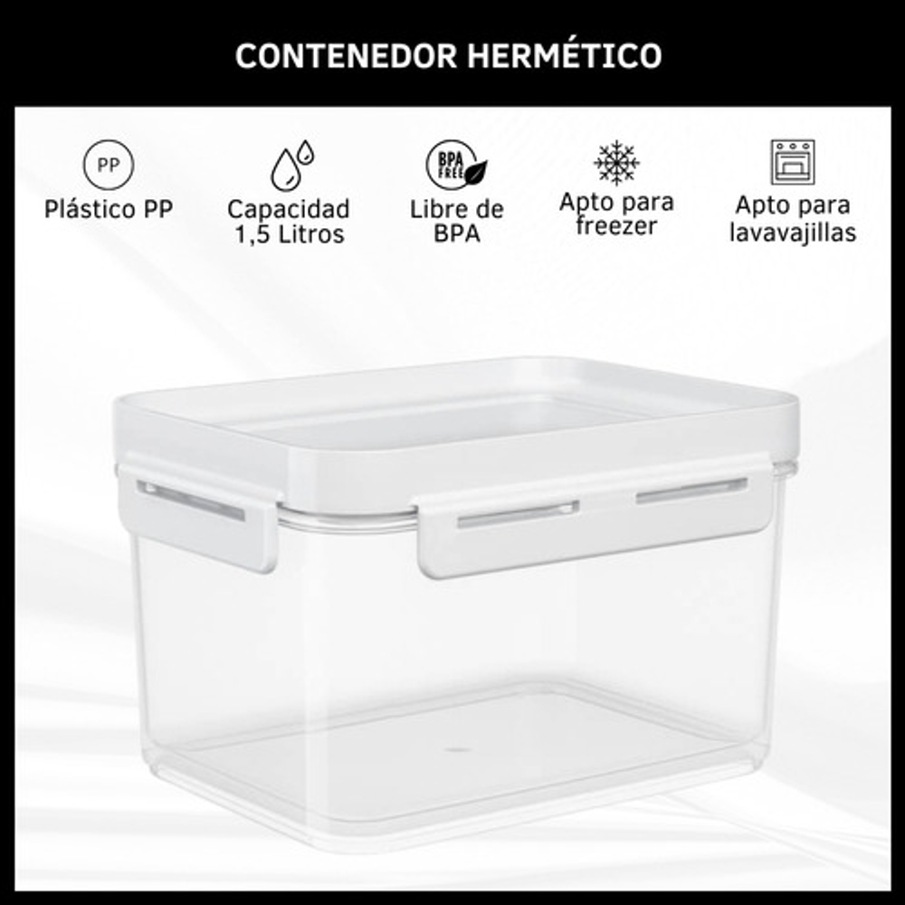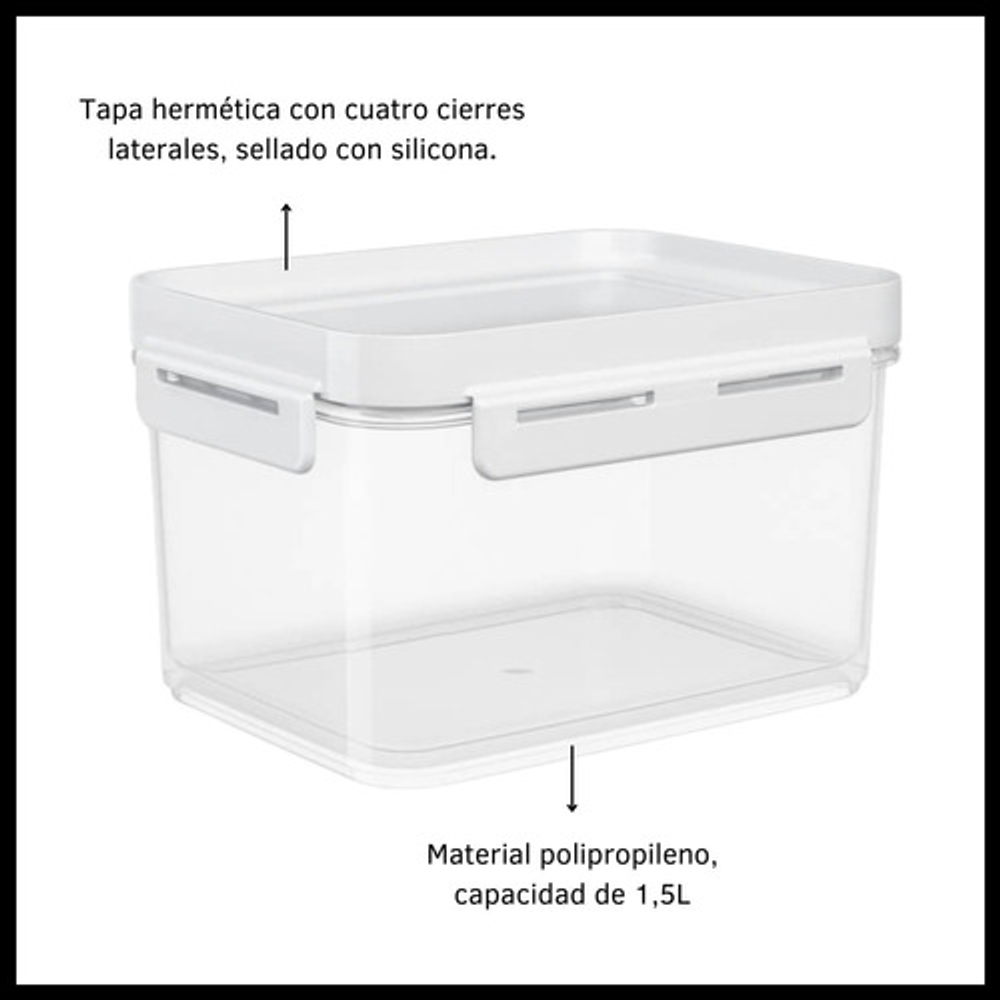 CONTENEDOR 1,5 L HERMÉTICO PLÁSTICO TRANSPARENTE