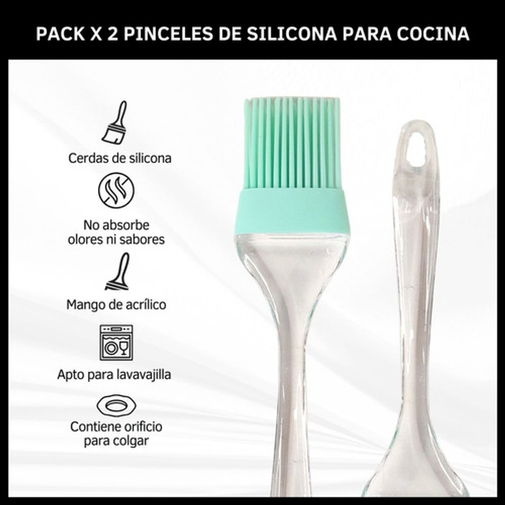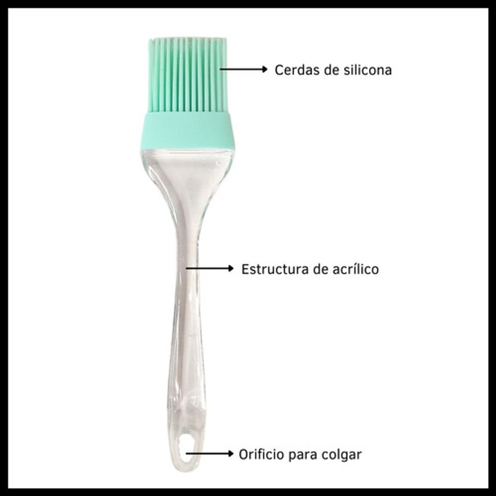 CARACTERISTICAS: -Cerdas de silicona -No absorbe olores ni sabores -Contiene orificio para colgar -Mango de acrílico desmontable -Apto para lavavajillas