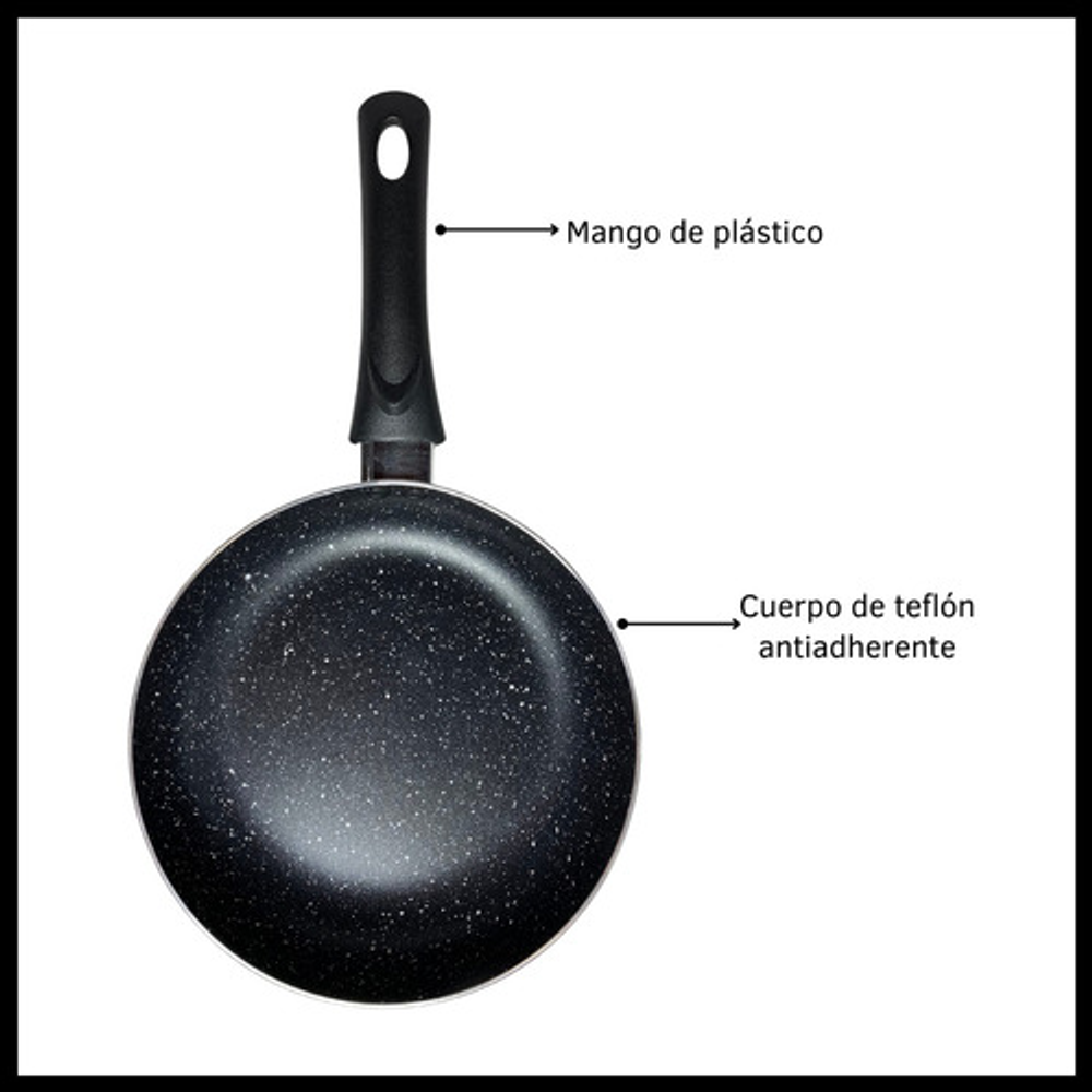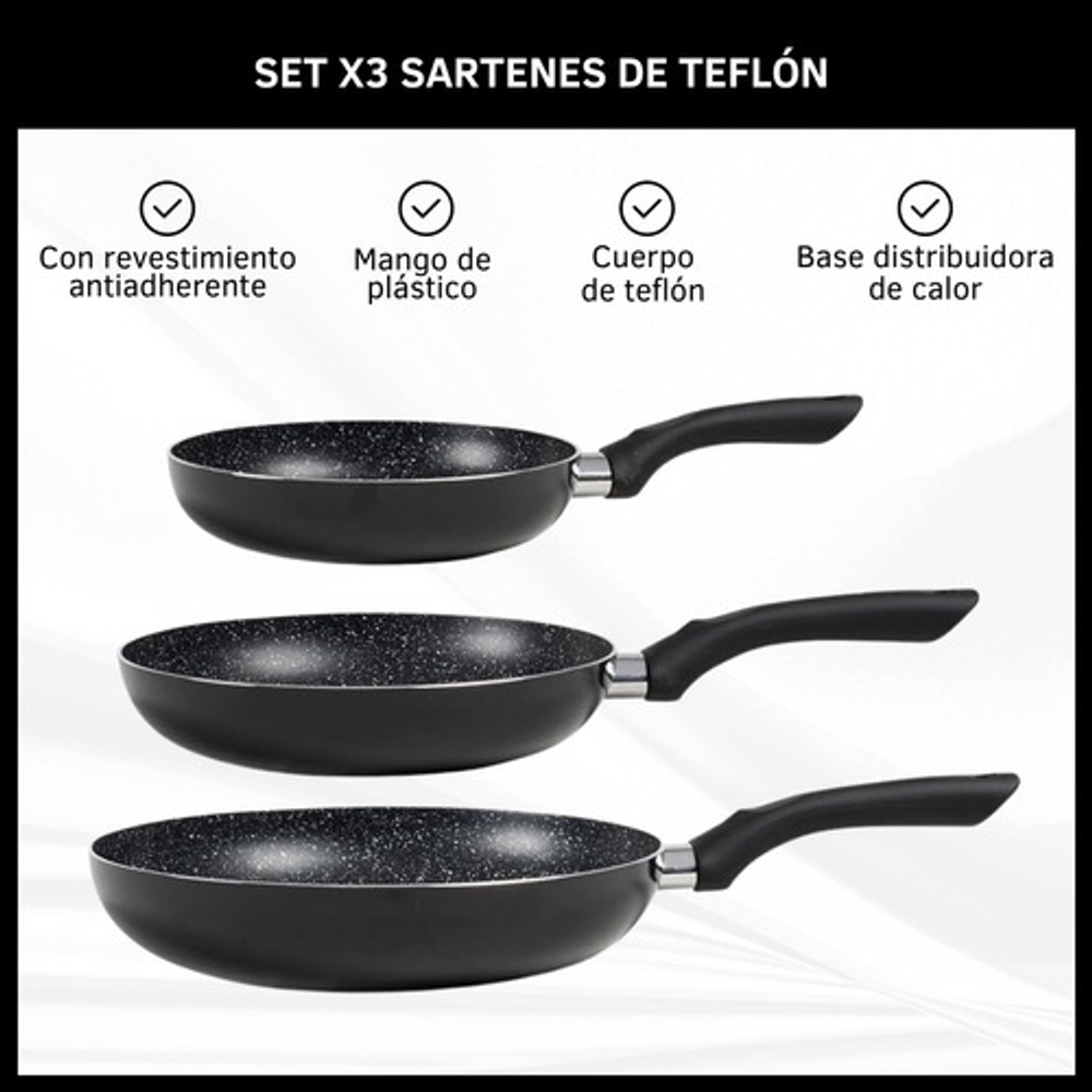 Características: -Superficie antiadherente. -Mango de plástico. -Cuerpo de teflón. -Set x3 unidades.