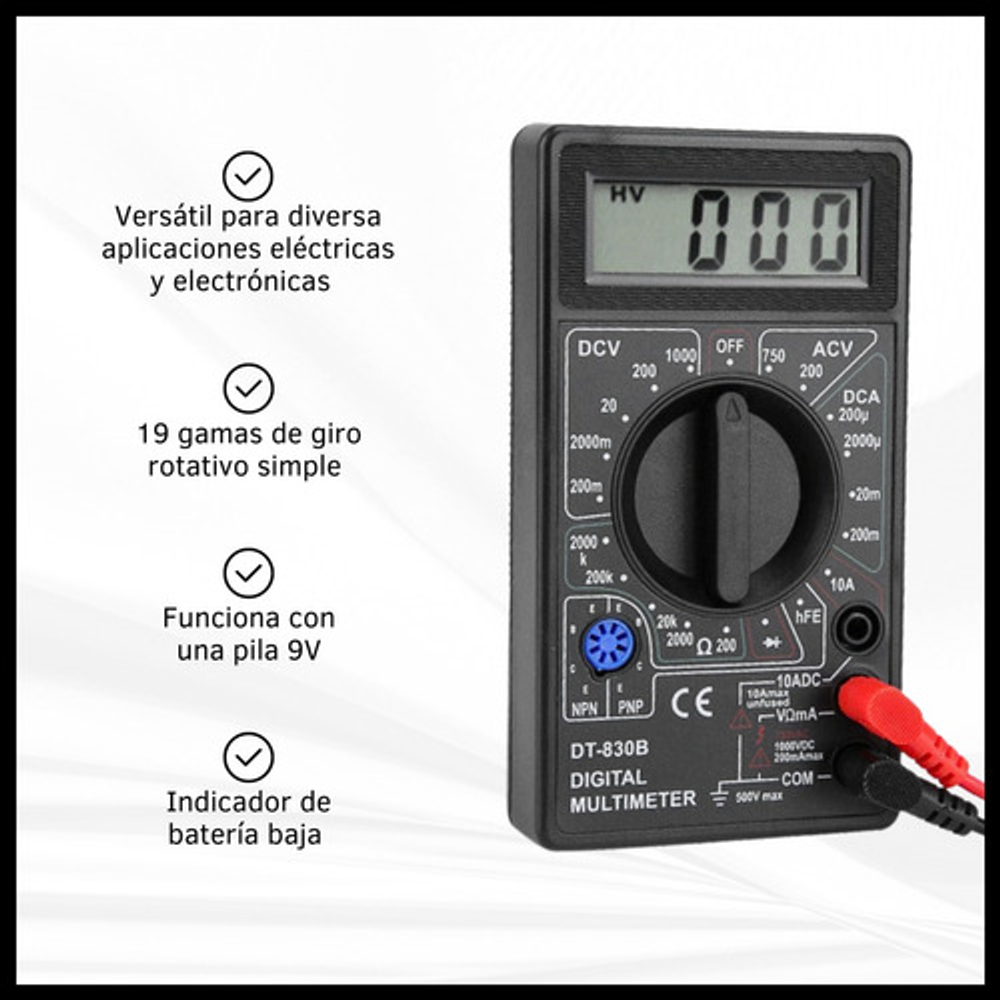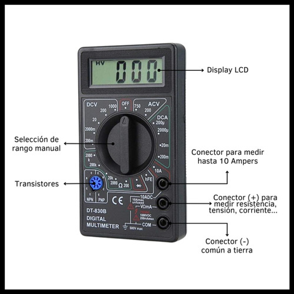 LCD de 3 1/2 dígitos. Lectura máxima 1999.