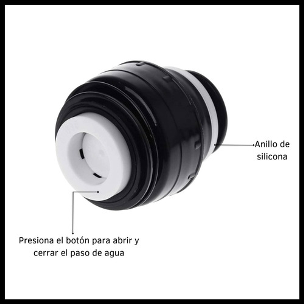 Características: -Material: Plástico -Sistema PUSH -Tiene un anillo de silicona que evita derrames -Compatible con la mayoría de termos (Te recomendamos que antes de realizar la compra midas tu termo y verifiques que sus medidas son compatibles con las medidas de nuestro tapón PUSH)
