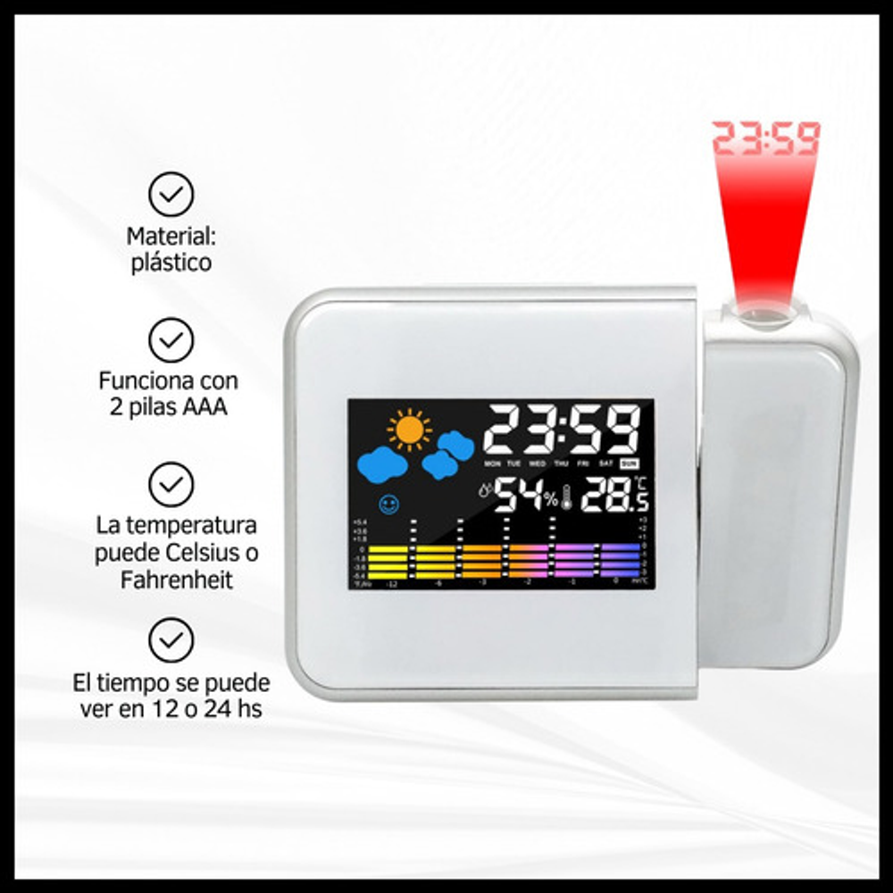 Características adicionales: Calendario,Proyector,Sensor de humedad,Sensor de temperatura