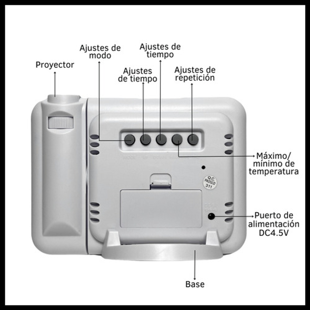 RELOJ DESPERTADOR CON PROYECCIÓN DE HORA