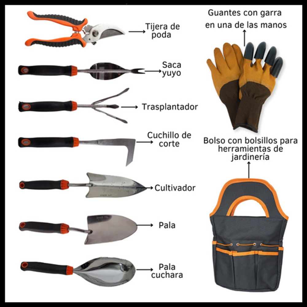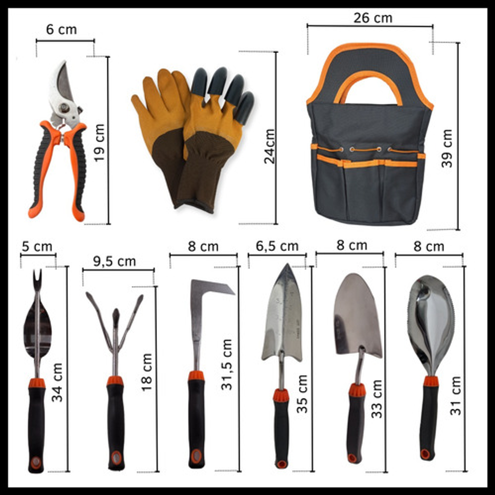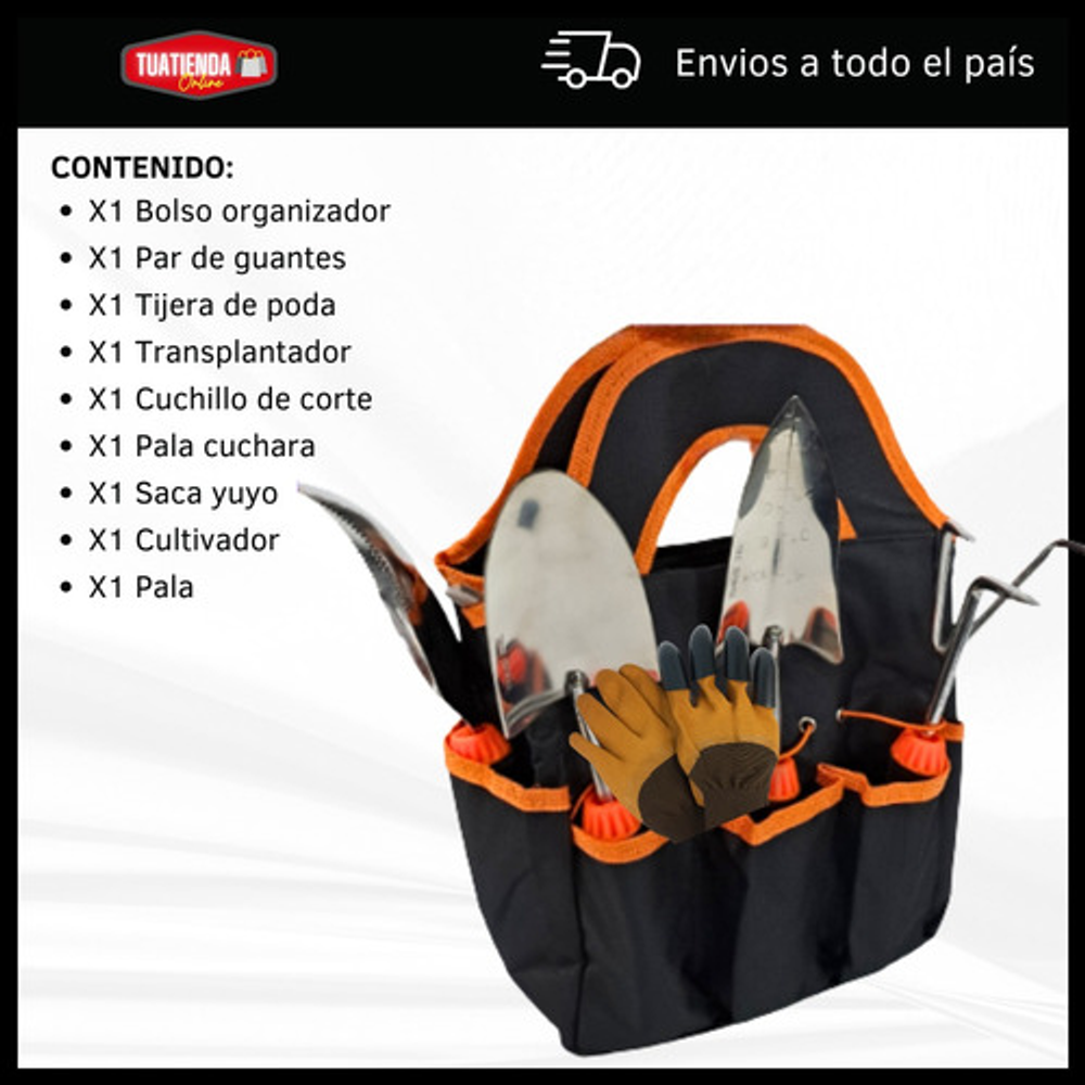 SET DE JARDIN KIT X 7 PIEZAS DE ACERO + BOLSO