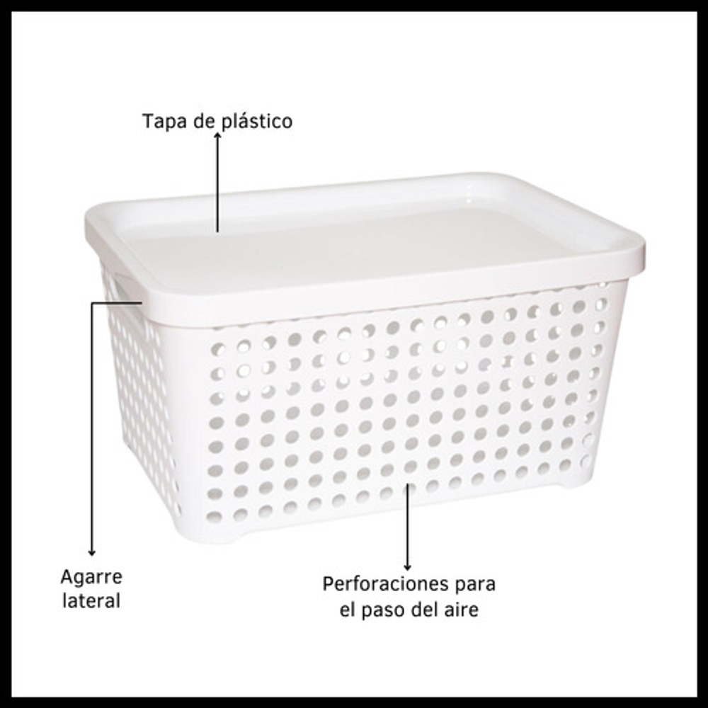 Características: • Apto para guardar todo tipo de objetos. • Posee agarres laterales. • Material: plástico. • Diseño orbital.