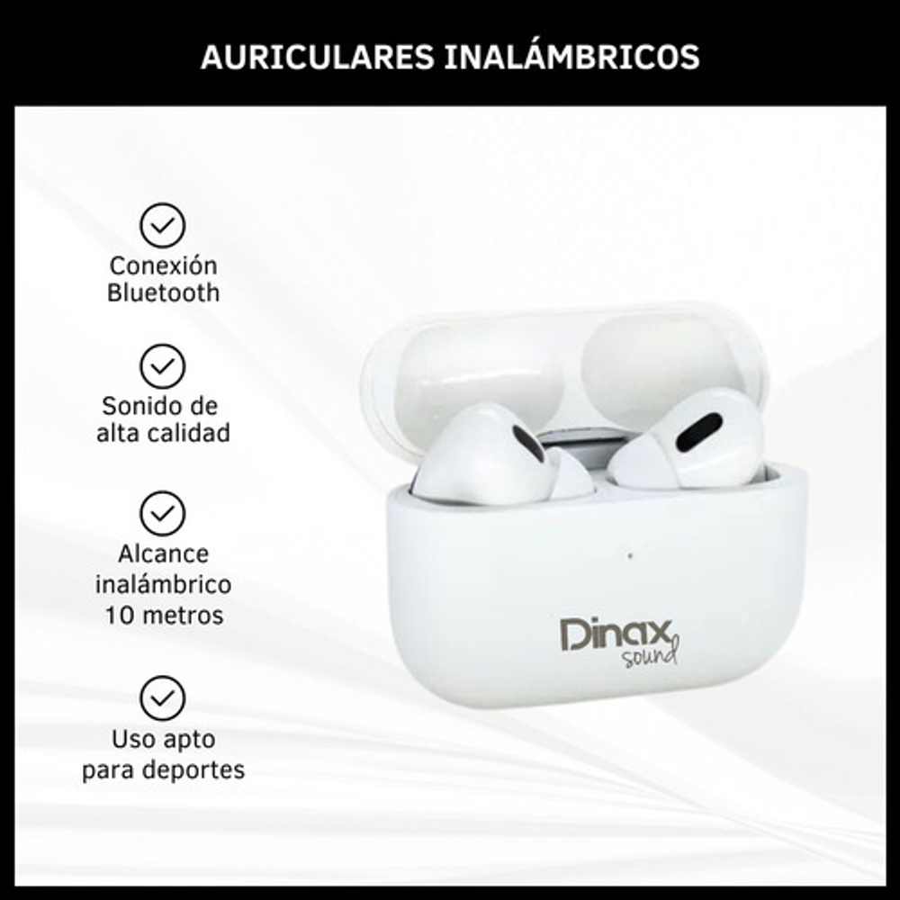 CARACTERÍSTICAS: -Manos libres. -Sonido de alta calidad. -Conexión inalámbrica. -Con estuche de carga. -Cómodos y prácticos. -Uso apto para deportes. -Incluye cable de carga USB IP. -Alcance inalámbrico de 10 metros.