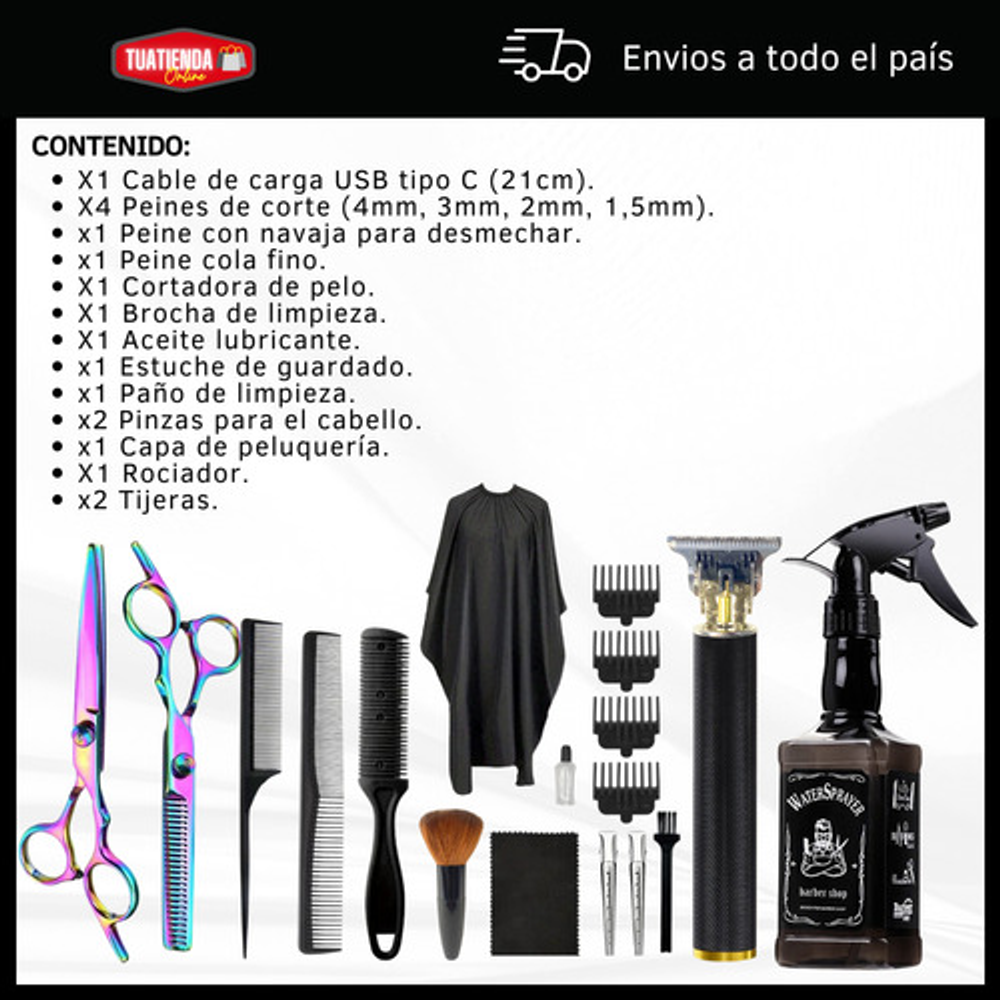 KIT DE PELUQUERÍA BARBERÍA CON MÁQUINA DE CORTAR EL PELO + ROCIADOR