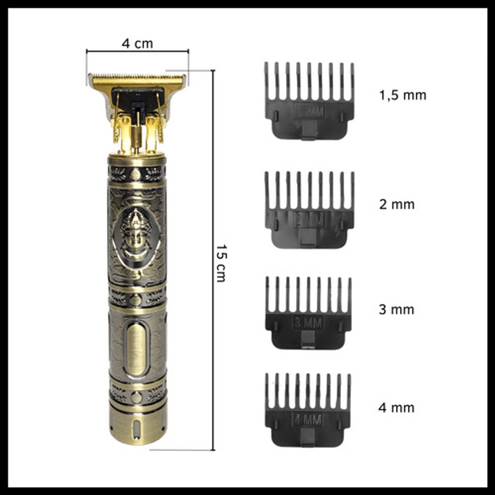 Incluye cuatro peines intercambiables. (1,5mm/2mm/3mm/4mm).