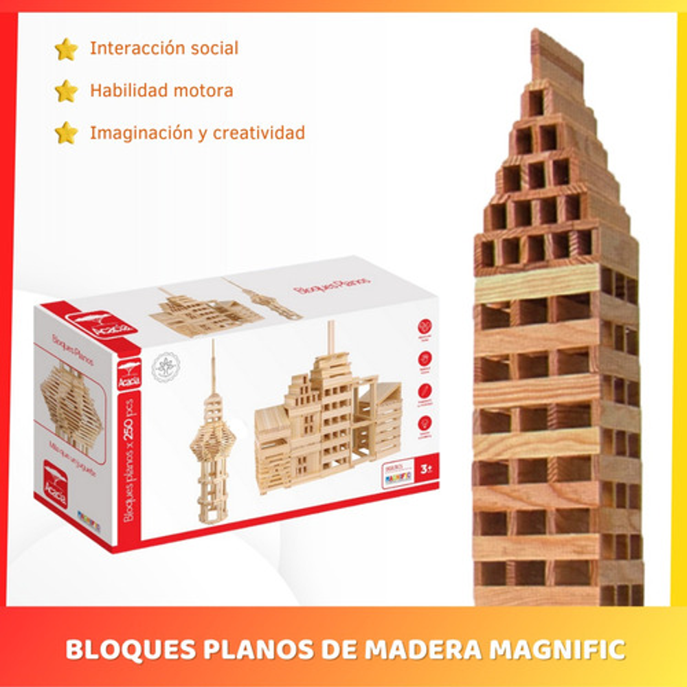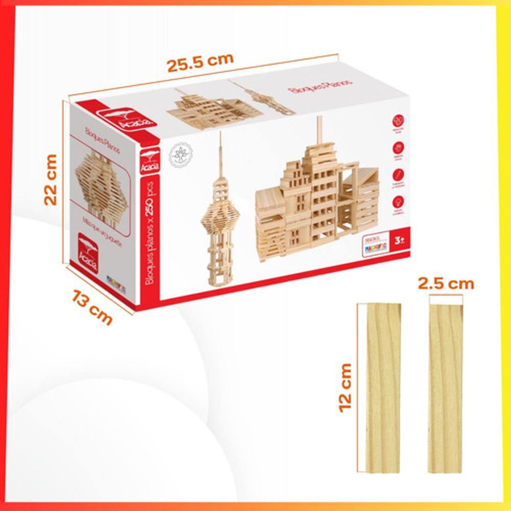 BLOQUES PLANOS DE MADERA NATURAL ACACIA MAGNIFIC 250 PIEZAS