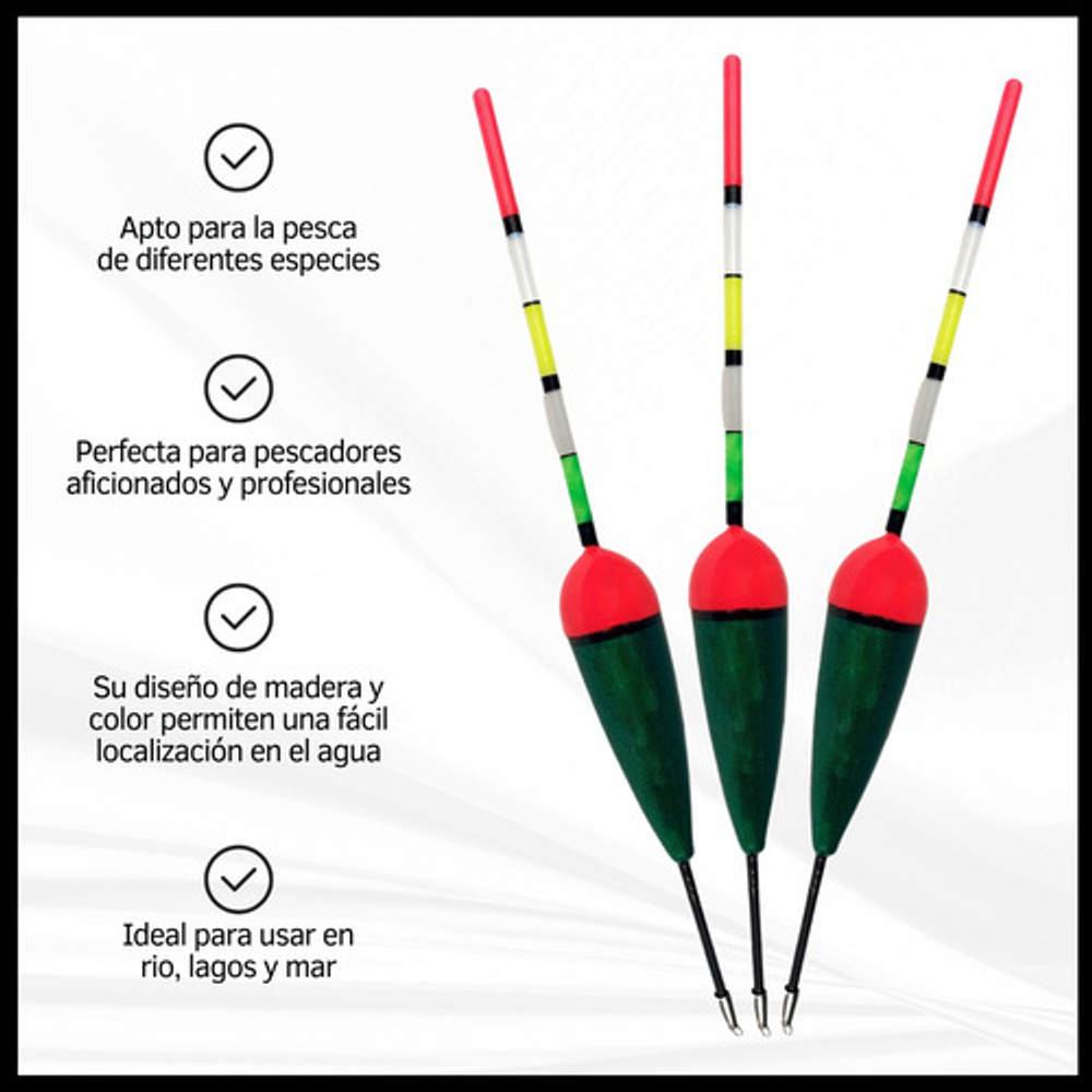 Su diseño de madera y color permiten una fácil localización en el agua.