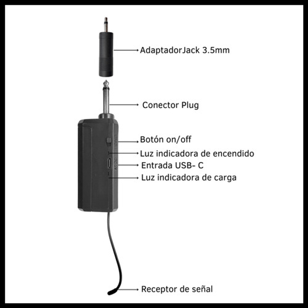 Receptor con conexión Jack 6.35 mm.