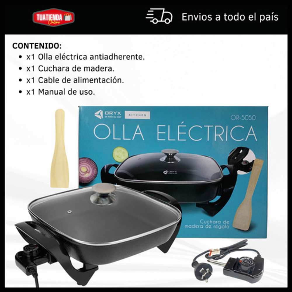 OLLA ELÉCTRICA MULTIUSO CON INTERIOR DE TEFLÓN ANTIADHERENTE.