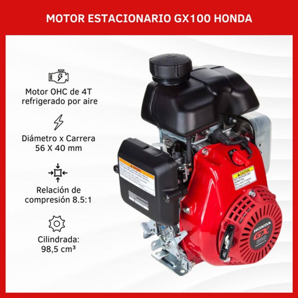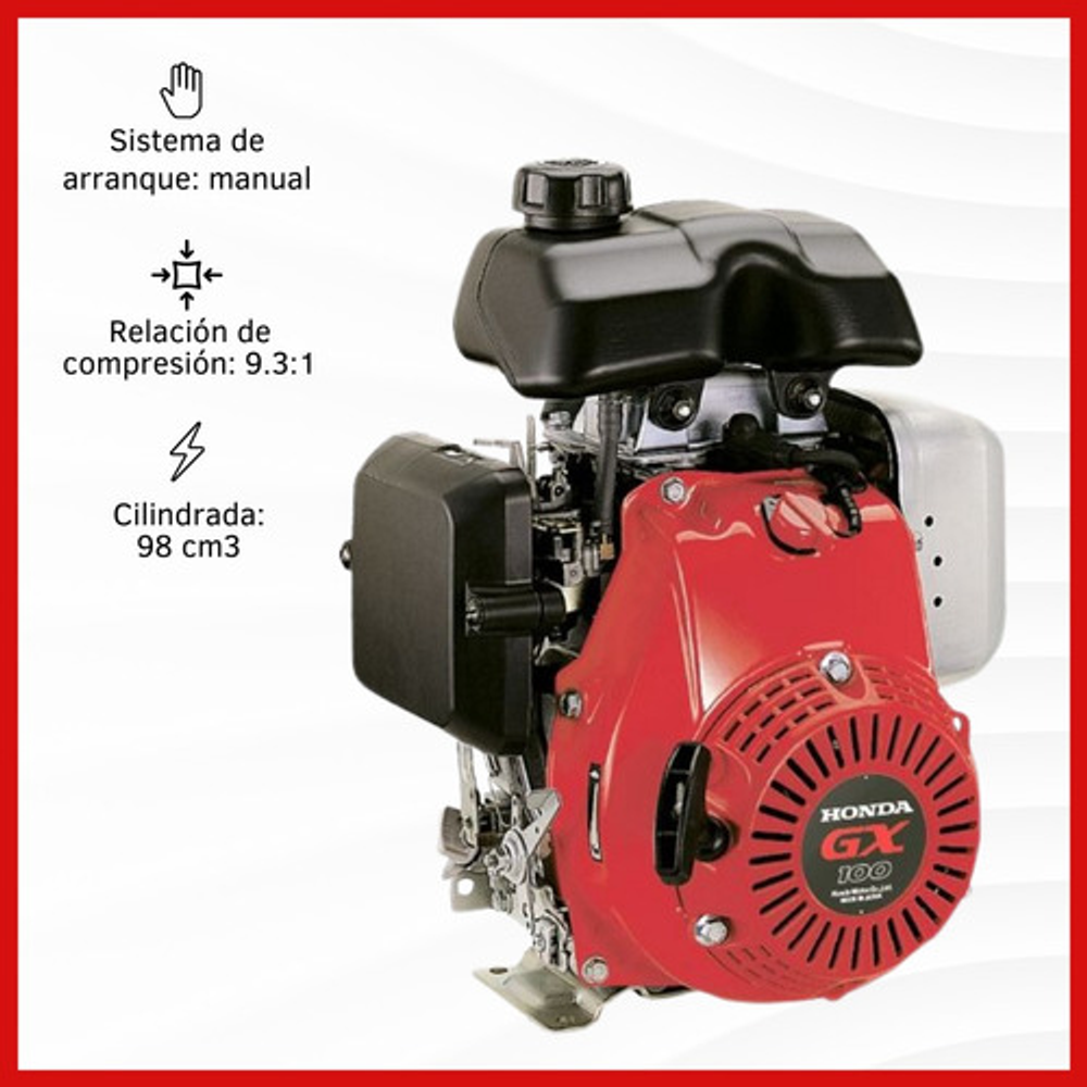 MOTOR ESTACIONARIO GX100 98,5 CC HONDA DE 4 TIEMPOS CON EJE RECTO Y ARRANQUE MANUAL.