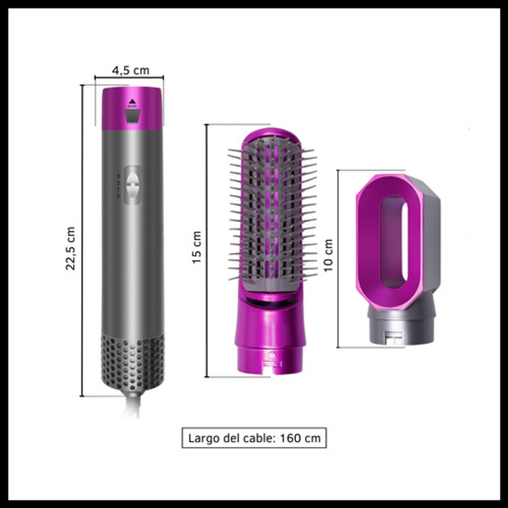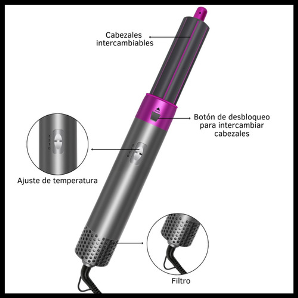 5 accesorios intercambiables, puedes utilizarlo para distintos estilos de peinado desde alisar hasta rizar. (No son giratorios)