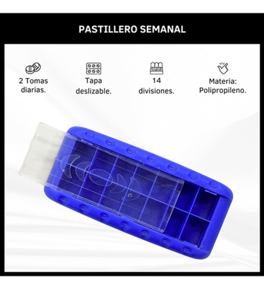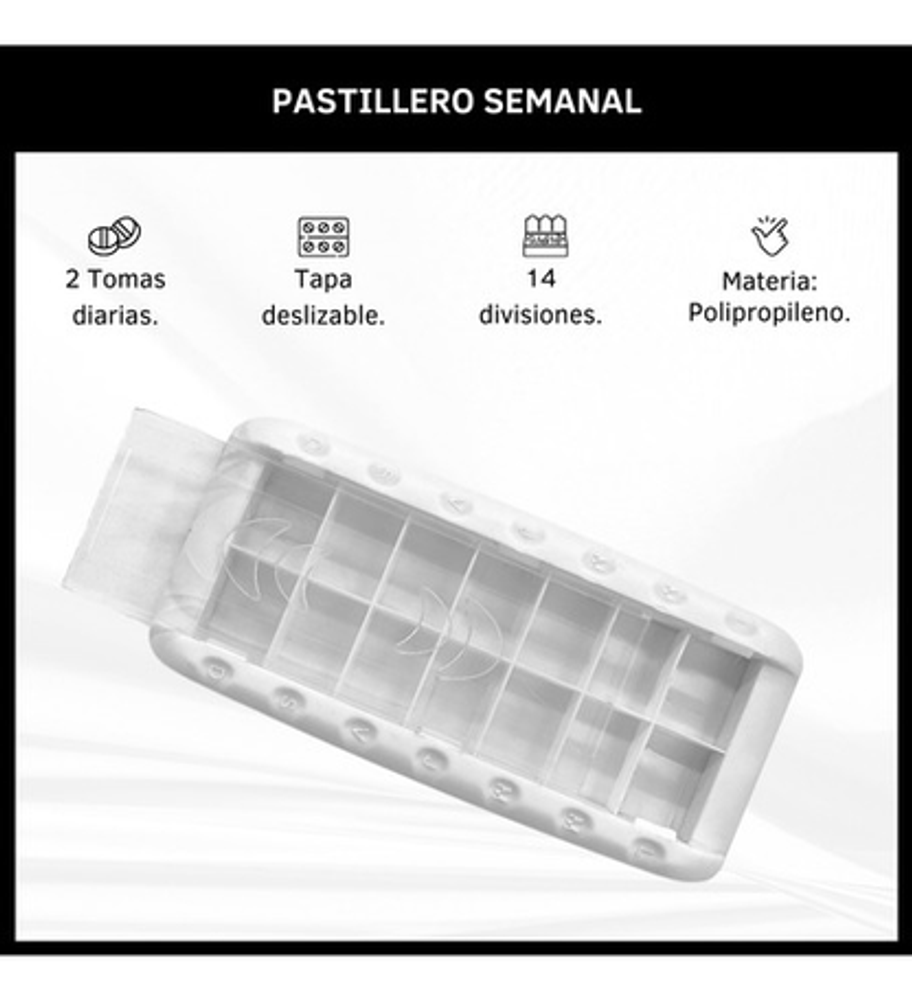 Permite organizar y administrar tus medicamentos a lo largo de la semana.