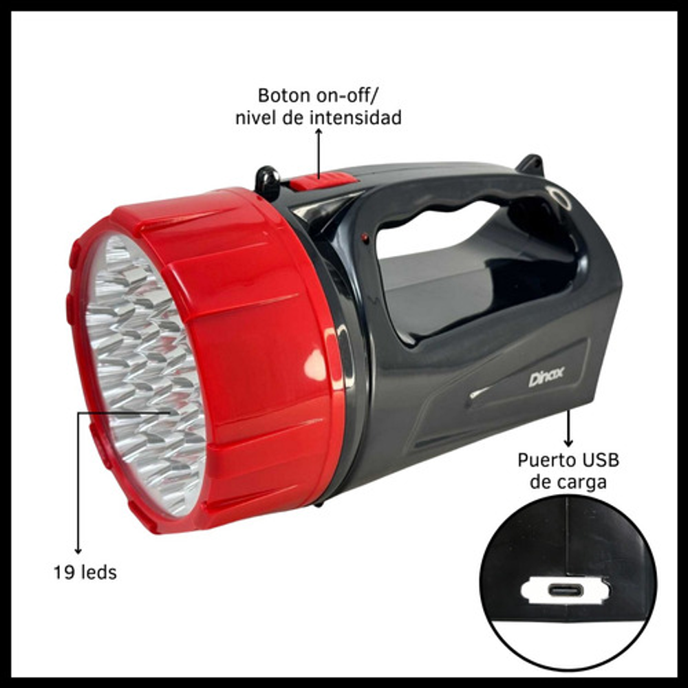 LINTERNA DE MANO RECARGABLE CON 19 LEDS