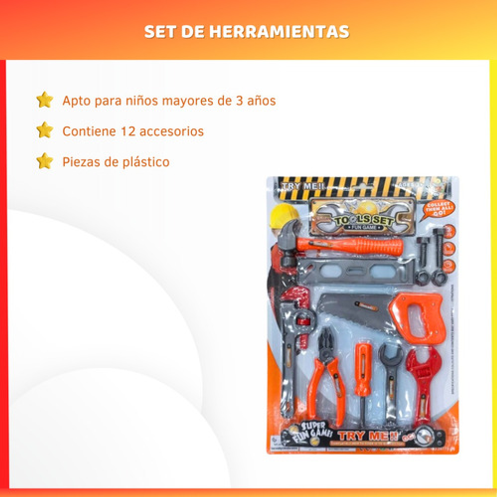 Accesorios incluidos: Destornillador,Llaves,Martillo,Pinza,Regla,Serrucho,Tornillo,Tuerca
