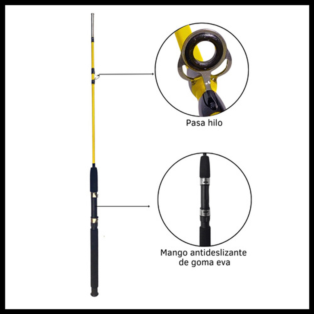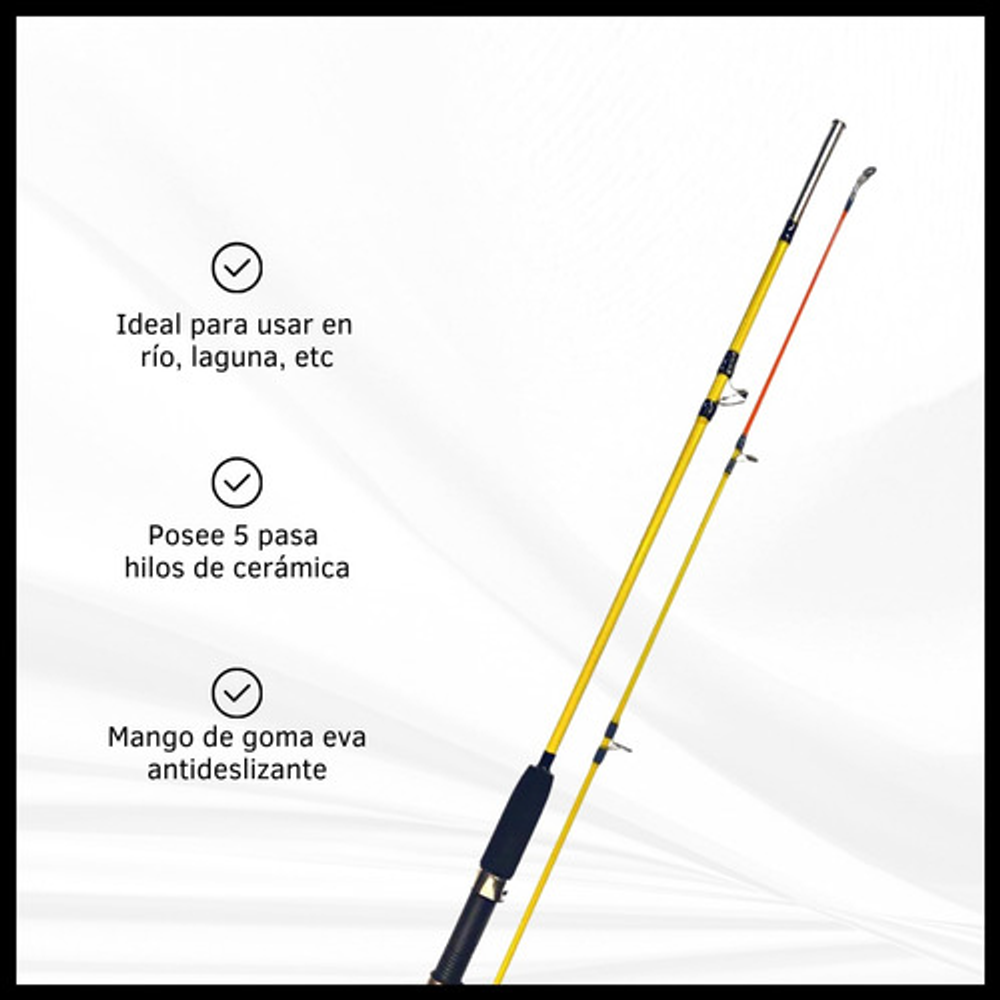 Mango de goma eva antideslizante. -Composición fibra de vidrio, liviana con gran reacción, extraordinaria resistencia y flexibilidad.