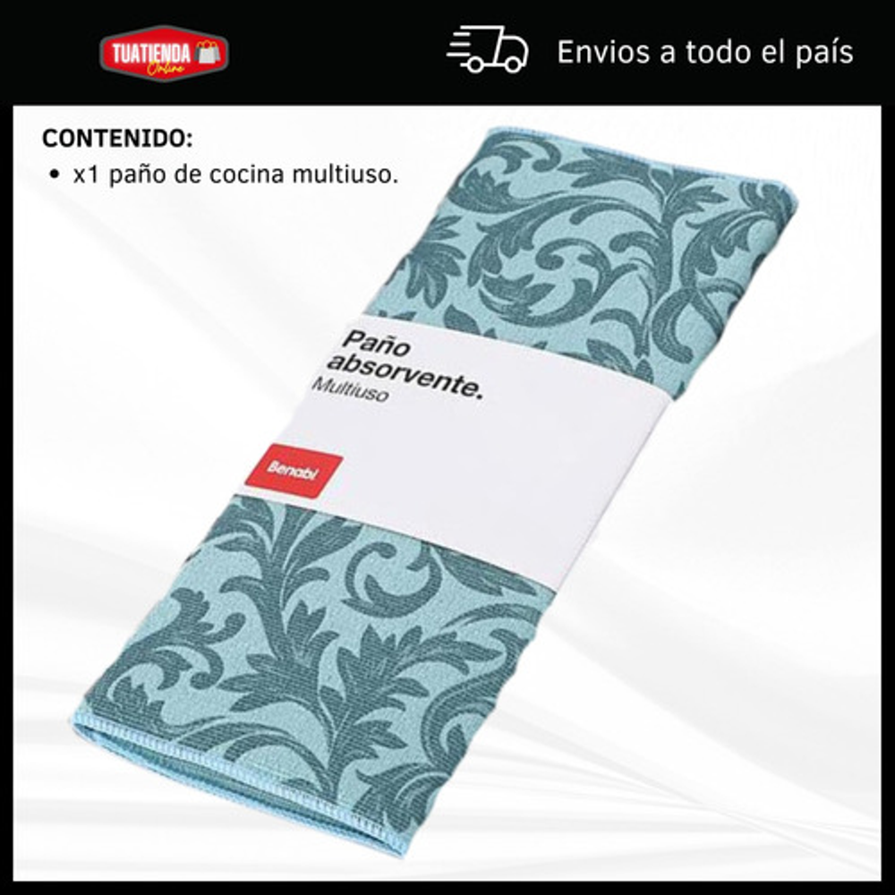 Características: -Apto para uso diario. -Textura suave que no raya superficies. -Ideal para apoyar en la mesada. -Gran capacidad de absorción. -No absorbe malos olores. -Medidas: 38 x 50 cm. -Secado rápido.