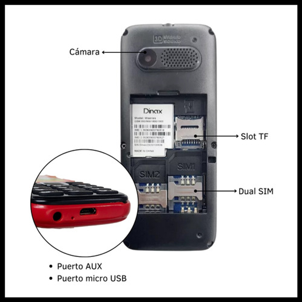 Características: • Video. • Juegos. • Slot TF. • Linterna. • Dual SIM. • Radio Fm. • Mp3-Mp4. • Entrada 3.5mm. • Pantalla 1.8"LCD. • Grabadora de sonido. • Cámara de 1PX.