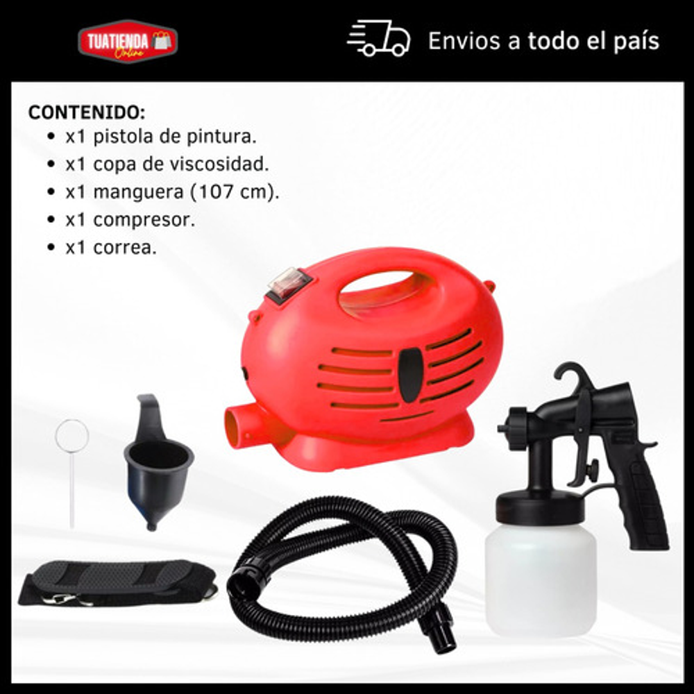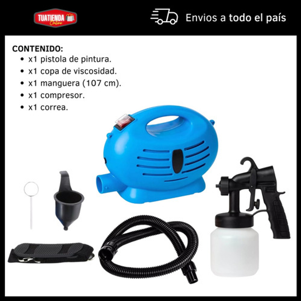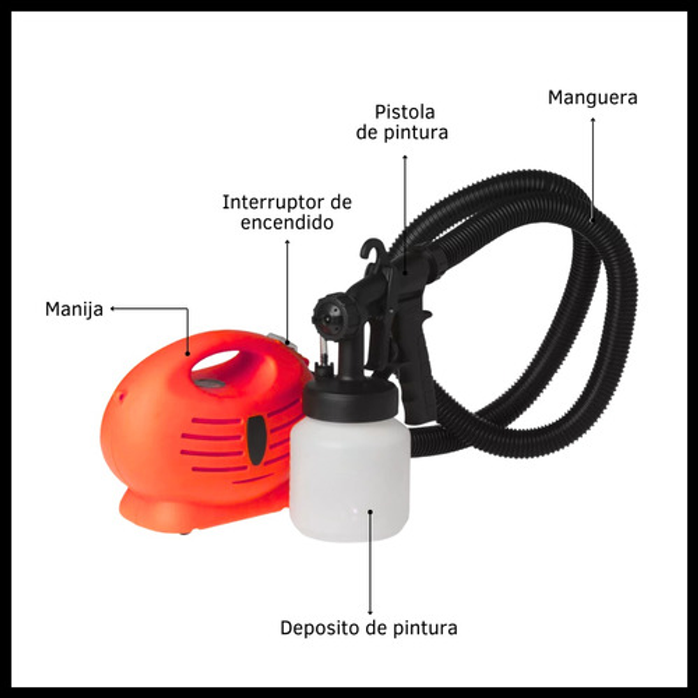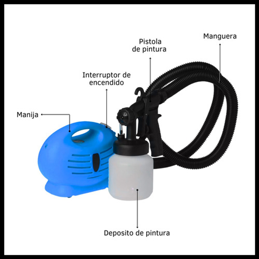 CARACTERÍSTICAS • No gotea. • Peso: 1,9kg. • Con correa. • 15 m2 en 10". • Potencia: 600W. • Manguera flexible. • Perfecta terminación. • Muy buena terminación. • Tensión 230-240% 50Hz. • Para todo tipo de superficies. • Largo de la manguera: 1,10 mts. • Capacidad del deposito: 800ml. • Energía de pulverización 105 W. • Velocidad del motor: 32000 RPM. • Ahorro de tiempo y mano de obra.