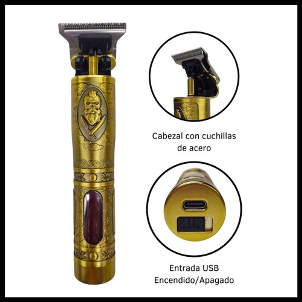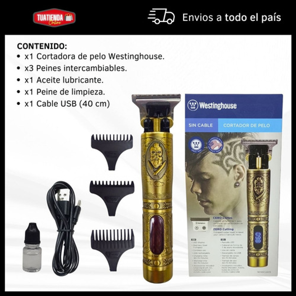 Incluye: cable USB, peine de limpieza, aceite lubricante, tres peines de corte intercambiables.