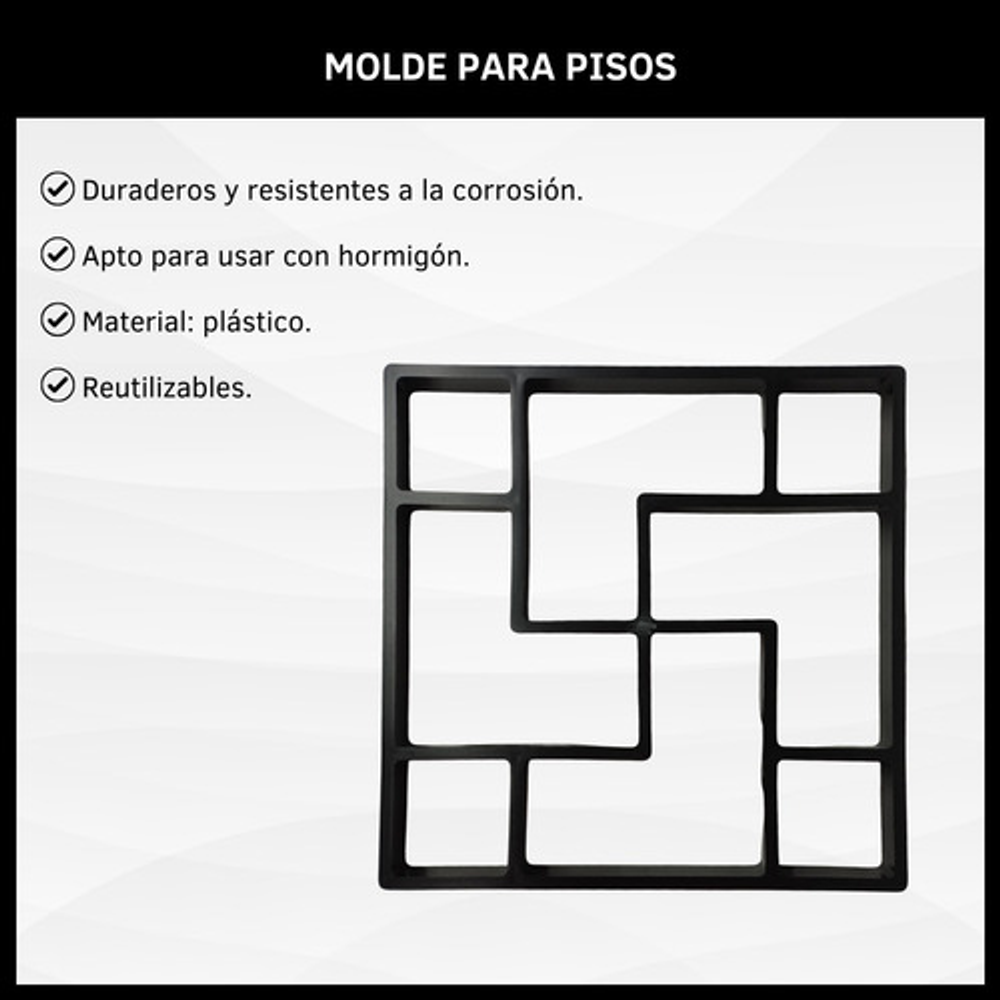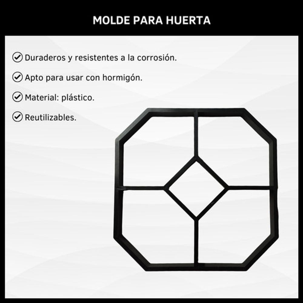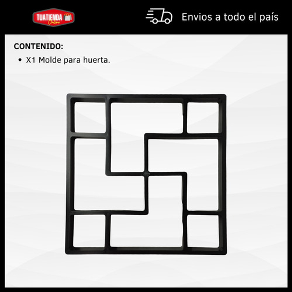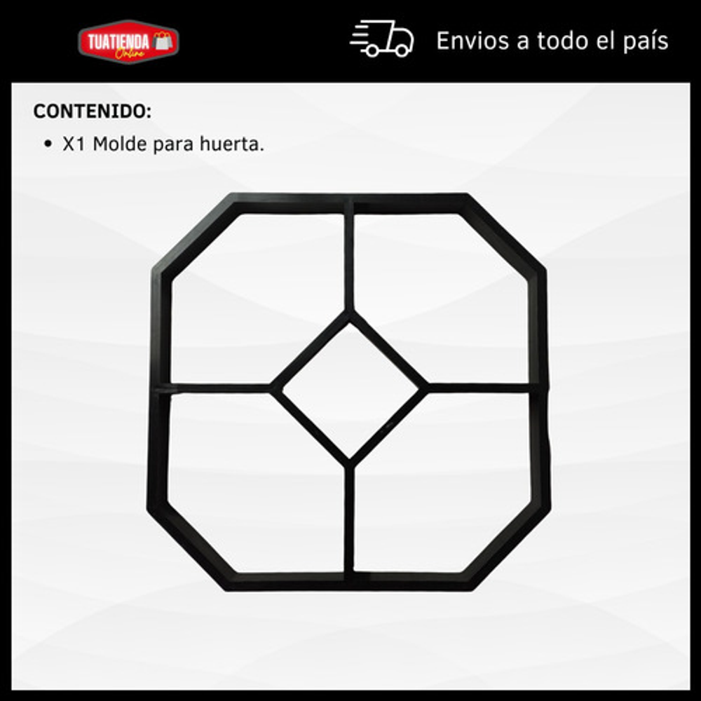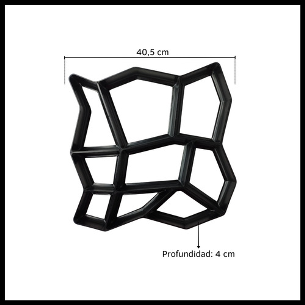 MODO DE USO: Coloca el molde en la superficie y rellénalo con hormigón, perfeccionado a mano cualquier área no cubierta. Dejar secar y luego retirar cuidadosamente el molde. Repetí los pasos para darle la forma deseada al diseño de tu sendero.