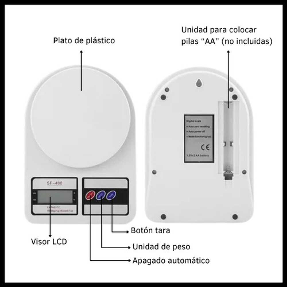 Apagado automático, ayuda a conservar la vida útil de las pilas al apagar la balanza.