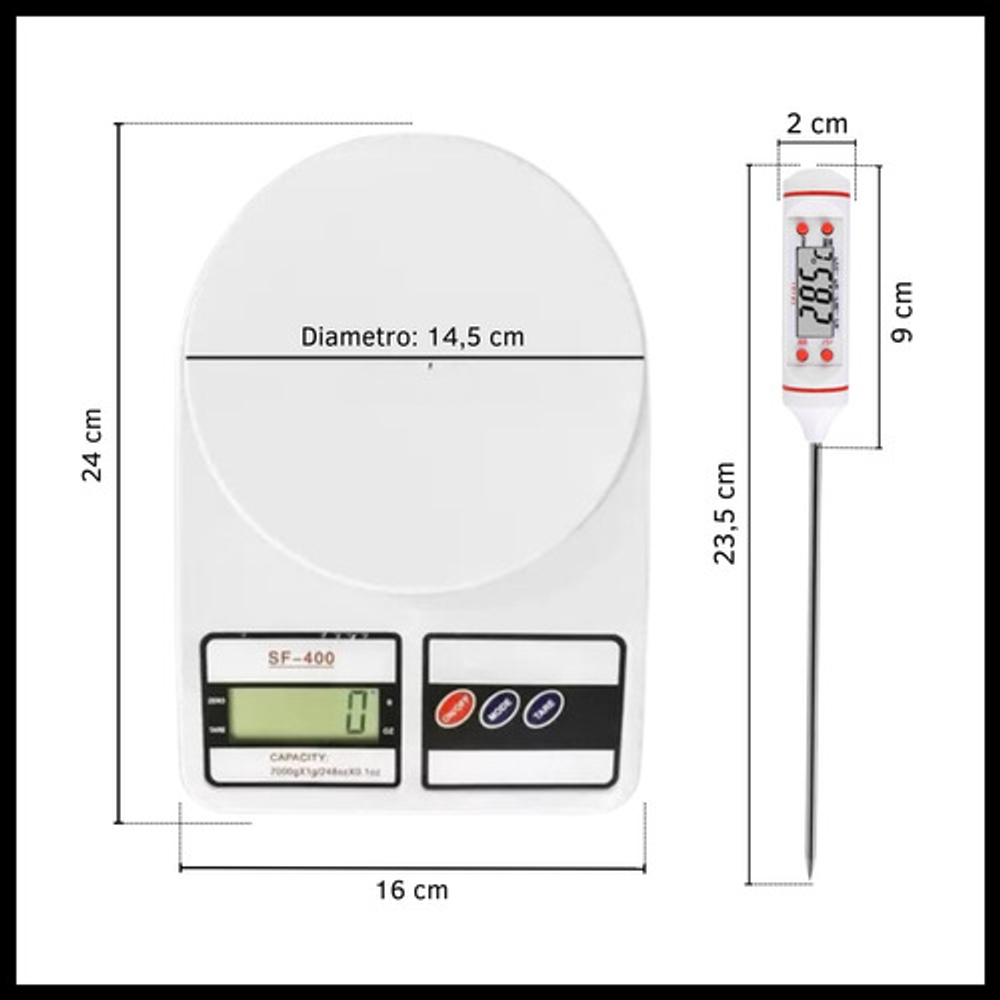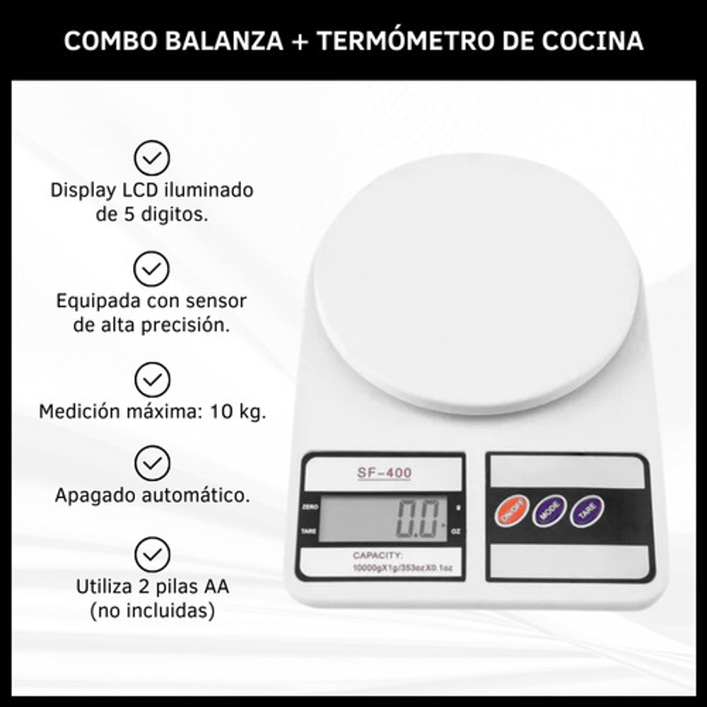 COMBO BALANZA + TERMÓMETRO DIGITAL DE COCINA