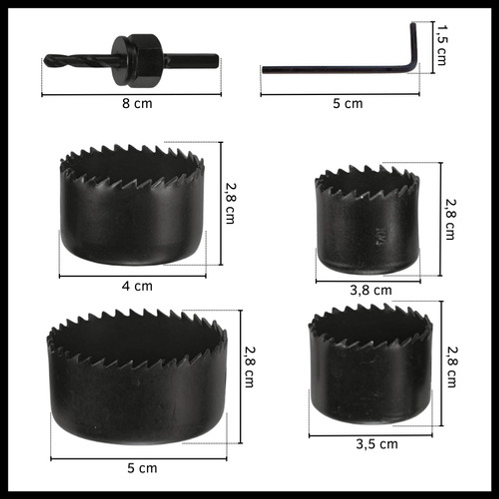 *MECHAS COPA DE ACERO AL CARBONO KIT x12 PIEZAS: https://articulo.mercadolibre.com.ar/MLA-1429947674-mechas-sierra-copa-juego-12-piezas-para-madera-acero-carbon-_JM