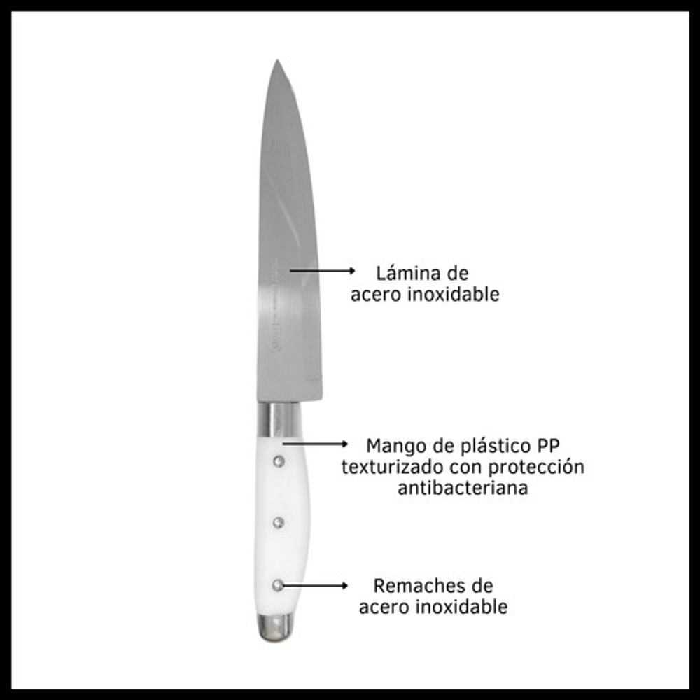 CUCHILLO DE COCINA CON MANGO PP Y HOJA DE ACERO.