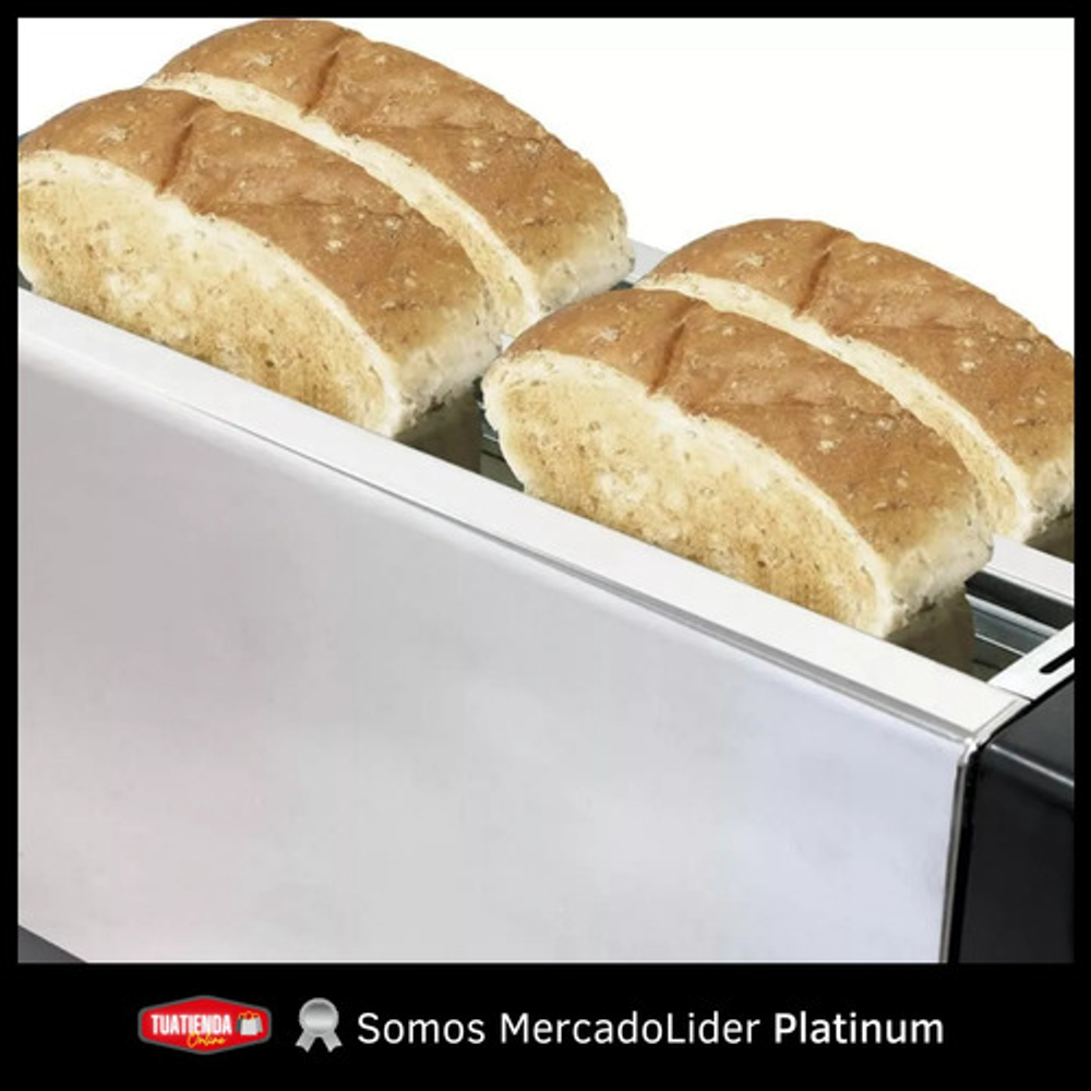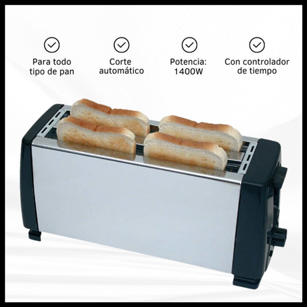 Capacidad para 4 rodajas, ideal para familias o grupos grandes, ahorrando tiempo en el proceso de tostado.