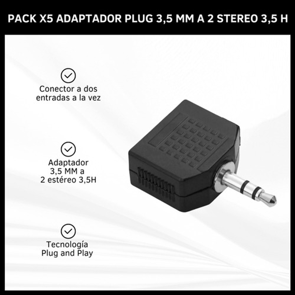 PACK X5 ADAPTADORES PLUG 3,5MM A 2 STEREO 3,5H