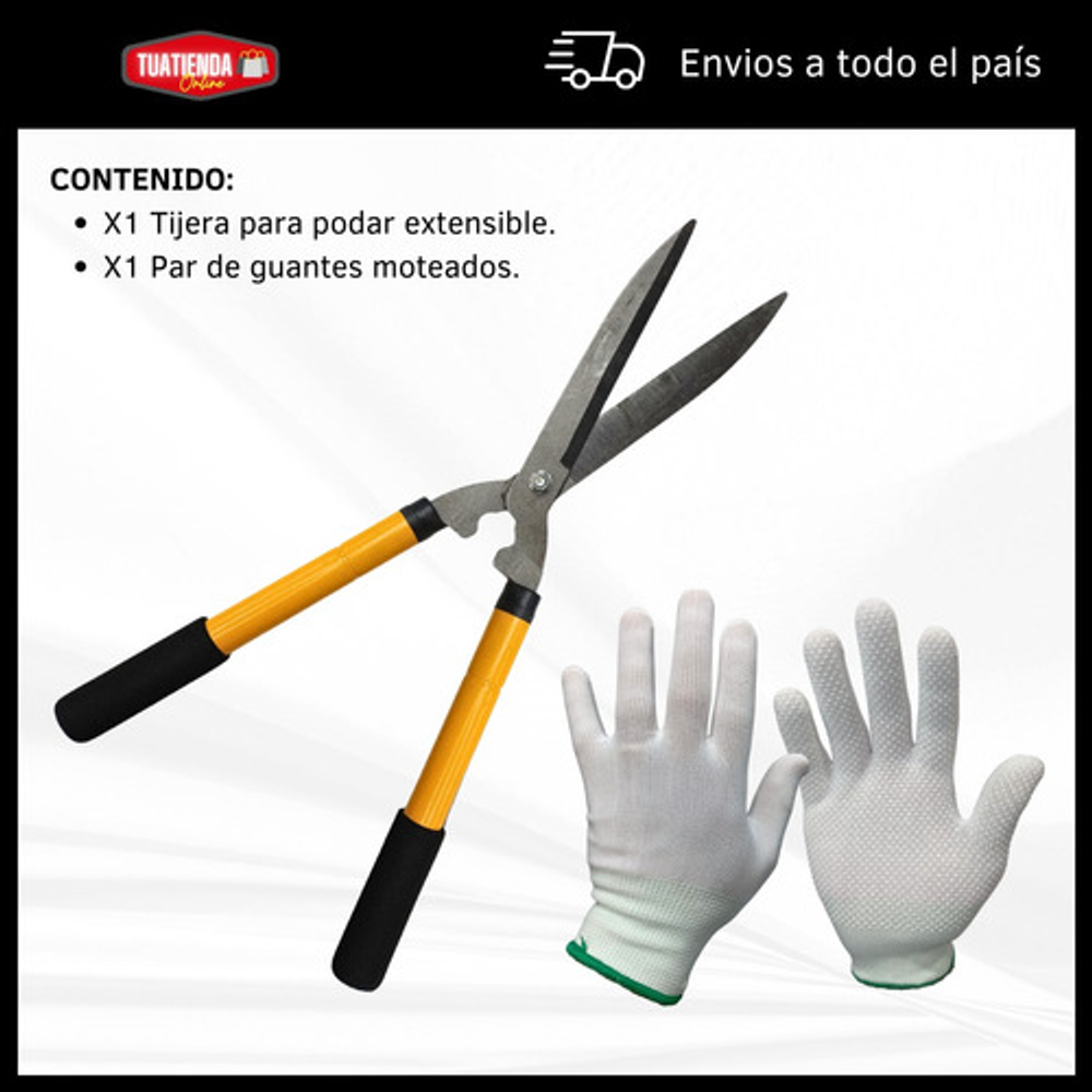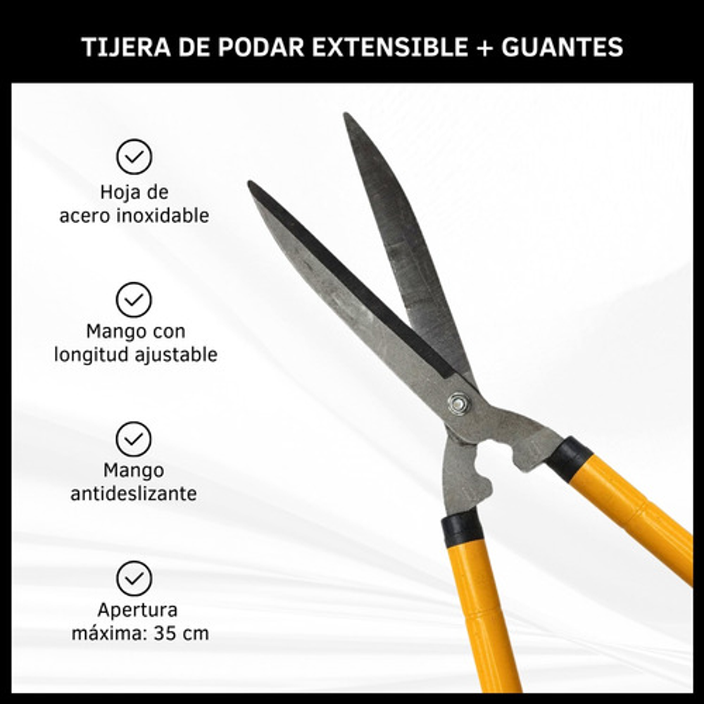 TIJERA PODAR EXTENSIBLE + GUANTES MOTEADOS
